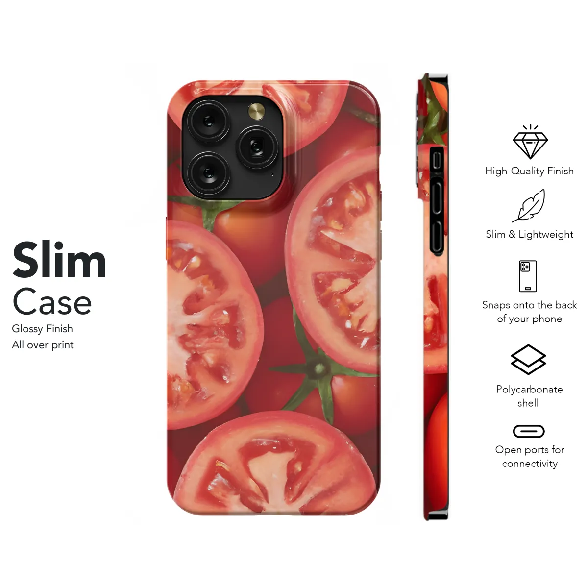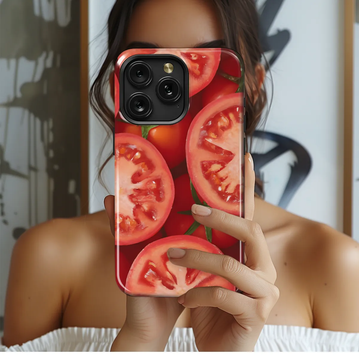 Introducing the delectable Tomato with Slices Phone Case, the perfect accessory to add a touch of summer freshness to your device. Our case is designed to protect your phone from everyday bumps and scratches while showcasing the juicy wonder of a sliced tomato. Made with high-quality materials, our case ensures long-lasting protection and a comfortable grip. Its vibrant print will turn heads and make your phone the envy of all. Whether you're a tomato enthusiast or simply love the vibrant colors of summer, this phone case is a must-have. So, let the tomato slices protect your phone in style!