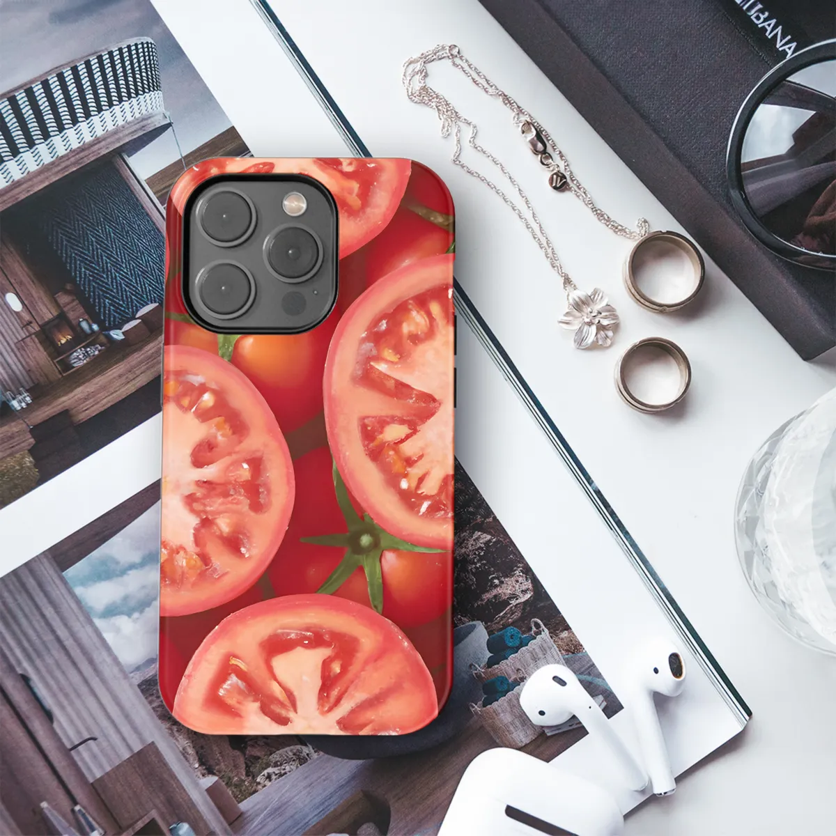 Introducing the delectable Tomato with Slices Phone Case, the perfect accessory to add a touch of summer freshness to your device. Our case is designed to protect your phone from everyday bumps and scratches while showcasing the juicy wonder of a sliced tomato. Made with high-quality materials, our case ensures long-lasting protection and a comfortable grip. Its vibrant print will turn heads and make your phone the envy of all. Whether you're a tomato enthusiast or simply love the vibrant colors of summer, this phone case is a must-have. So, let the tomato slices protect your phone in style!