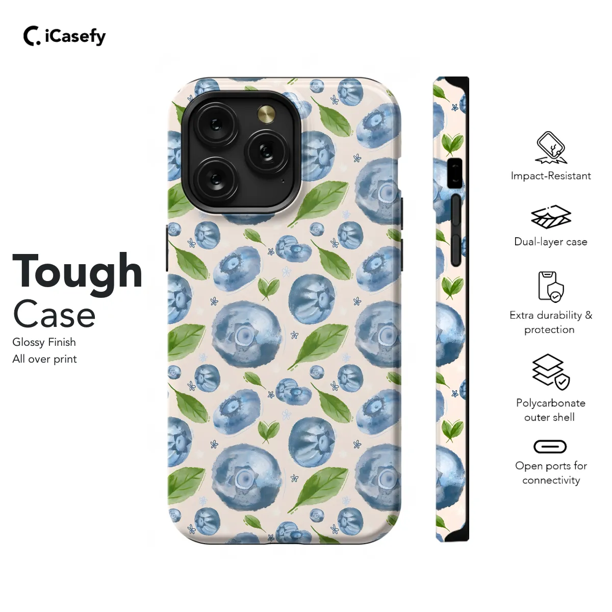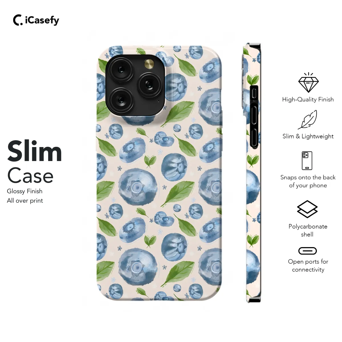 Indulge in a burst of fruity bliss with our Topical Fruit Blueberry Seamless Phone Case! Its vibrant blueberry design will add a touch of summer sweetness to your device. Protect your phone in style without sacrificing its sleek profile thanks to its form-fitting design. Compatible with iPhone, Samsung, Pixel, and more models, this case ensures your smartphone stays safe and chic wherever you go.