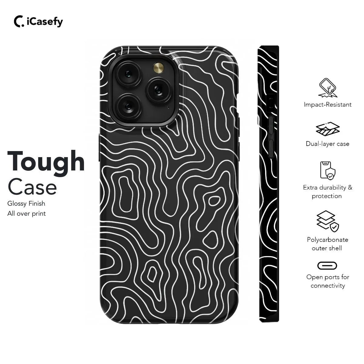 Capture the minimalist beauty of topographic maps with this sleek phone case featuring a black and white design. Adorned with intricate contour lines and geographic details, this accessory celebrates the elegance of cartographic artistry. Carry a touch of exploration and adventure with you wherever you go, letting your device become a canvas for the beauty and functionality of topographic maps with this stylish accessory.