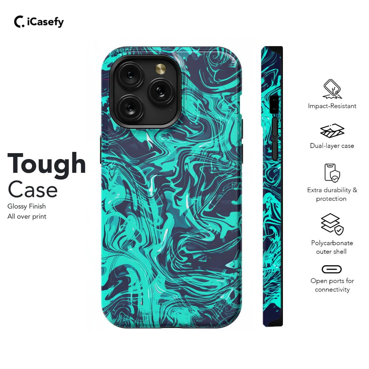 Immerse your device in sleek sophistication with this topographic map marble phone case, boasting a striking blend of black and cyan hues. Inspired by the natural elegance of marble and the intricate patterns of topography, this case exudes contemporary charm. Elevate your style and carry a touch of modernity with you wherever you go, letting your device make a statement with this eye-catching accessory.