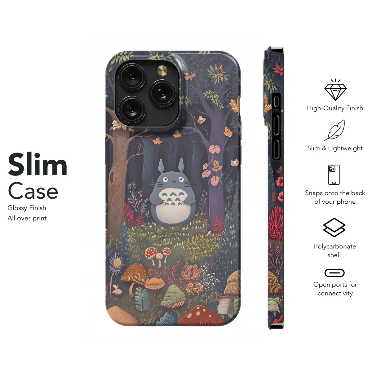 Step into the enchanting Totoro Forest with this magical phone case. Featuring whimsical illustrations of Totoro and his friends frolicking amidst the lush greenery, it captures the serenity and wonder of Studio Ghibli's beloved masterpiece. Protect your precious device while embracing the magic of childhood and nature.