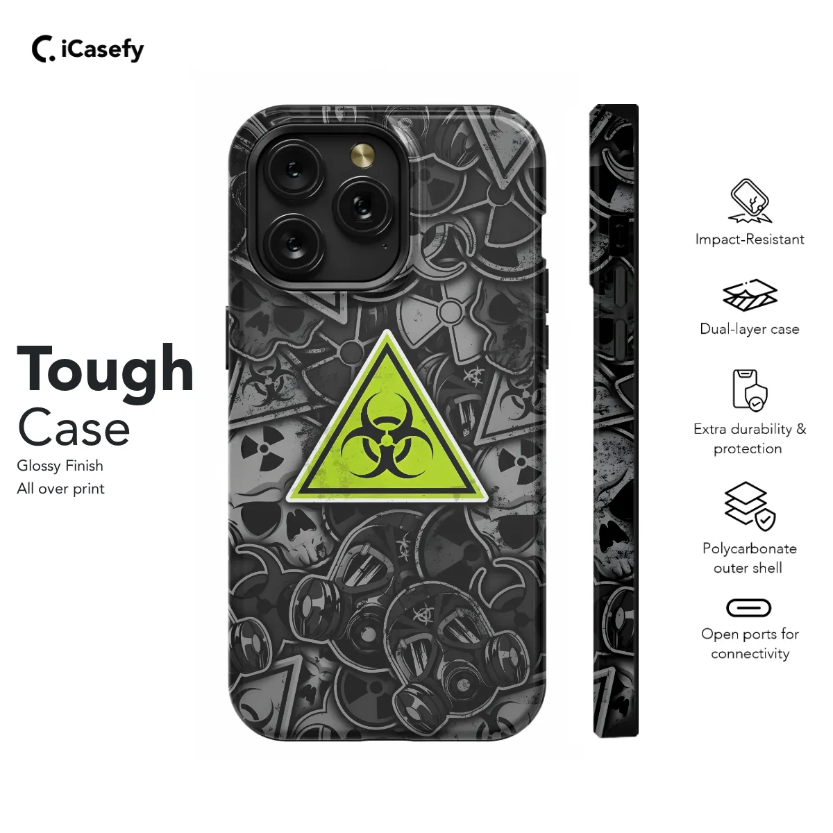 Introducing the Toxic Danger Phone Case, the ultimate protection for your precious smartphone against the perils of daily use and haphazard handling. Crafted from premium materials, this case is unyielding in its defense against scratches, drops, and impacts. Its sleek design and vibrant colors not only enhance the aesthetics of your phone but also serve as a warning to all who dare to harm it. Whether you're an iPhone, Samsung, or Pixel user, this case has you covered. Its precise cutouts ensure seamless access to all ports and buttons, while its raised lip safeguard your screen from unwanted scratches. Embrace the Toxic Danger Phone Case and experience the peace of mind that comes with knowing your phone is shielded from the pitfalls of modern life.