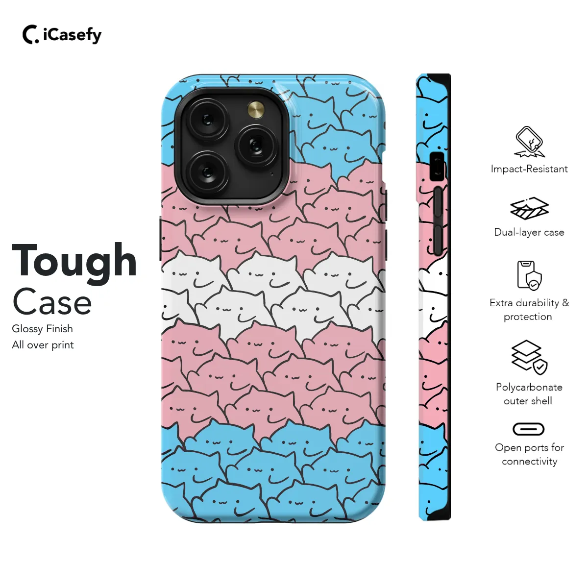 Showcase your pride with our vibrant Trans Pride Cats Phone Case! This colorful case features adorable felines adorned with the transgender flag, adding a touch of LGBTQ+ flair to your mobile device. Its durable materials provide reliable protection against scratches and impacts, ensuring your phone stays safe while you express yourself freely. Available for iPhone, Samsung, and Pixel models in sizes 6, 4, and 8, this case is the perfect way to show your support for the transgender community.