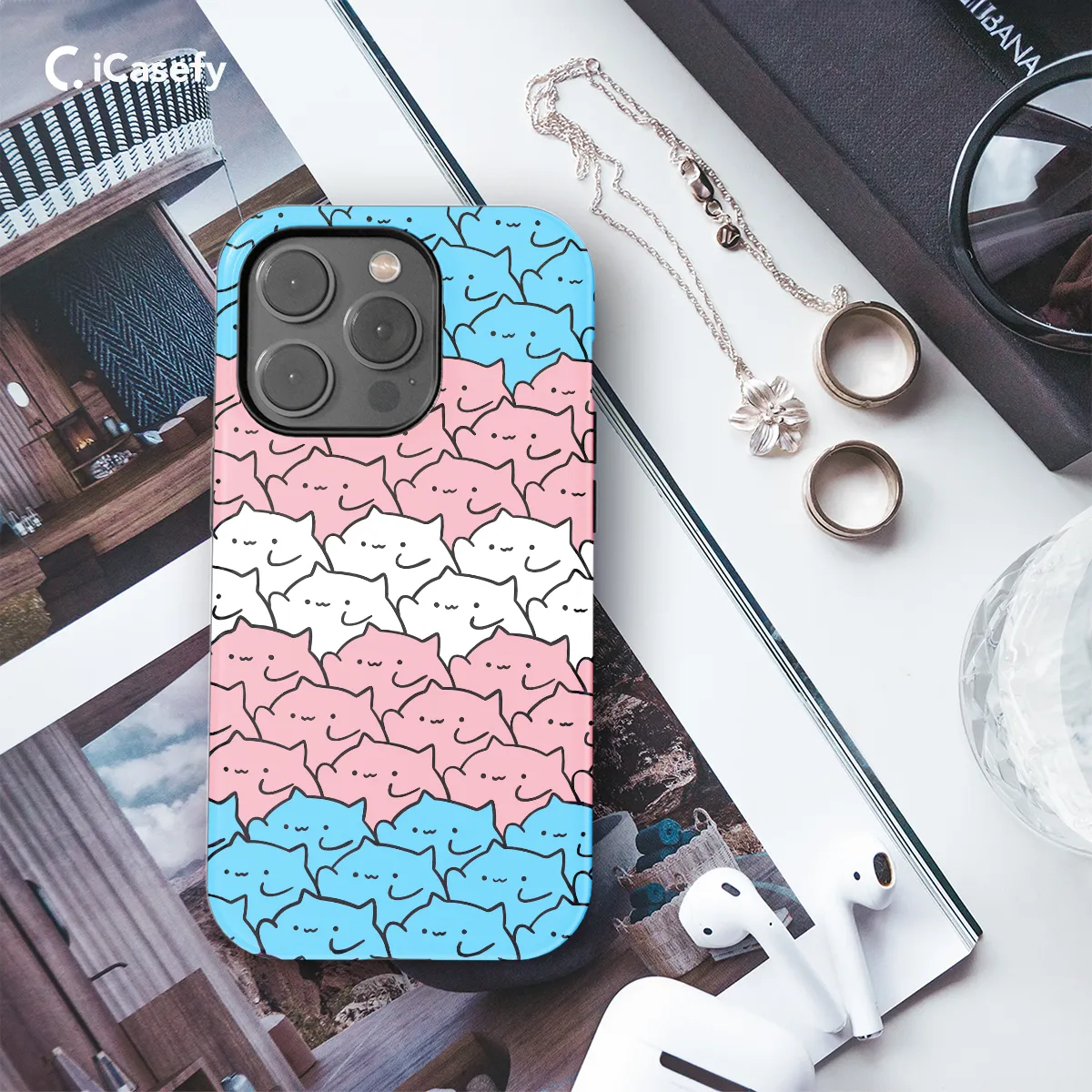 Showcase your pride with our vibrant Trans Pride Cats Phone Case! This colorful case features adorable felines adorned with the transgender flag, adding a touch of LGBTQ+ flair to your mobile device. Its durable materials provide reliable protection against scratches and impacts, ensuring your phone stays safe while you express yourself freely. Available for iPhone, Samsung, and Pixel models in sizes 6, 4, and 8, this case is the perfect way to show your support for the transgender community.