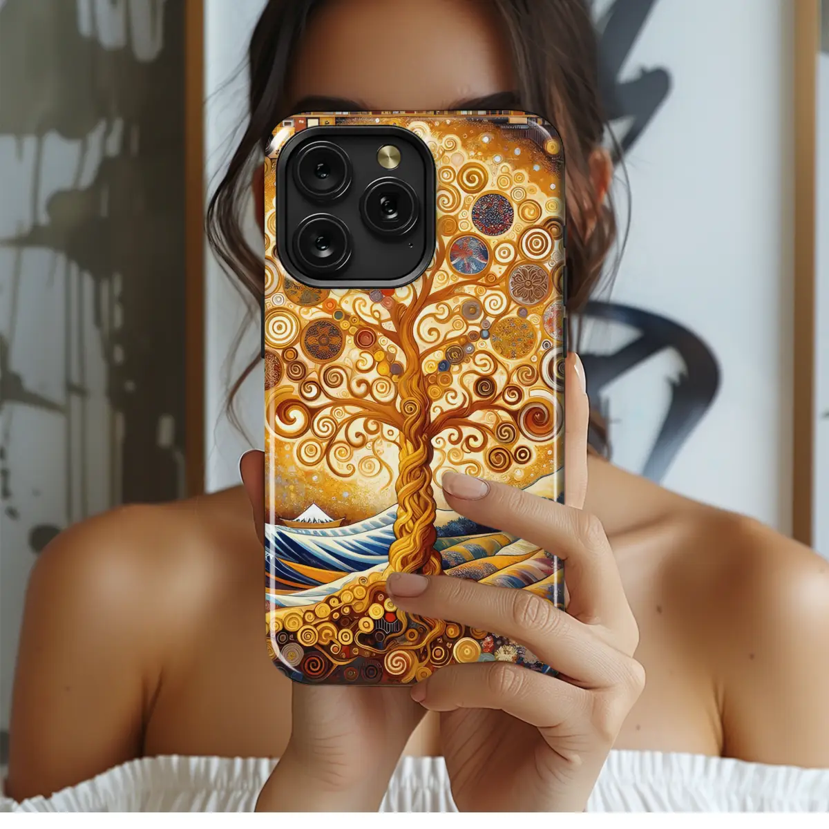 Immerse yourself in the captivating fusion of Klimt's opulence and Van Gogh's vibrant brushwork with this Tree of Life Phone Case. The intricate design depicts a majestic tree of life, its branches reaching towards the heavens while its roots delve deep into the earth. Surrounded by an explosion of colors, this case becomes a wearable work of art that celebrates the interconnectedness of life. Crafted from durable materials, it safeguards your device while adding a touch of brilliance to your daily essentials.