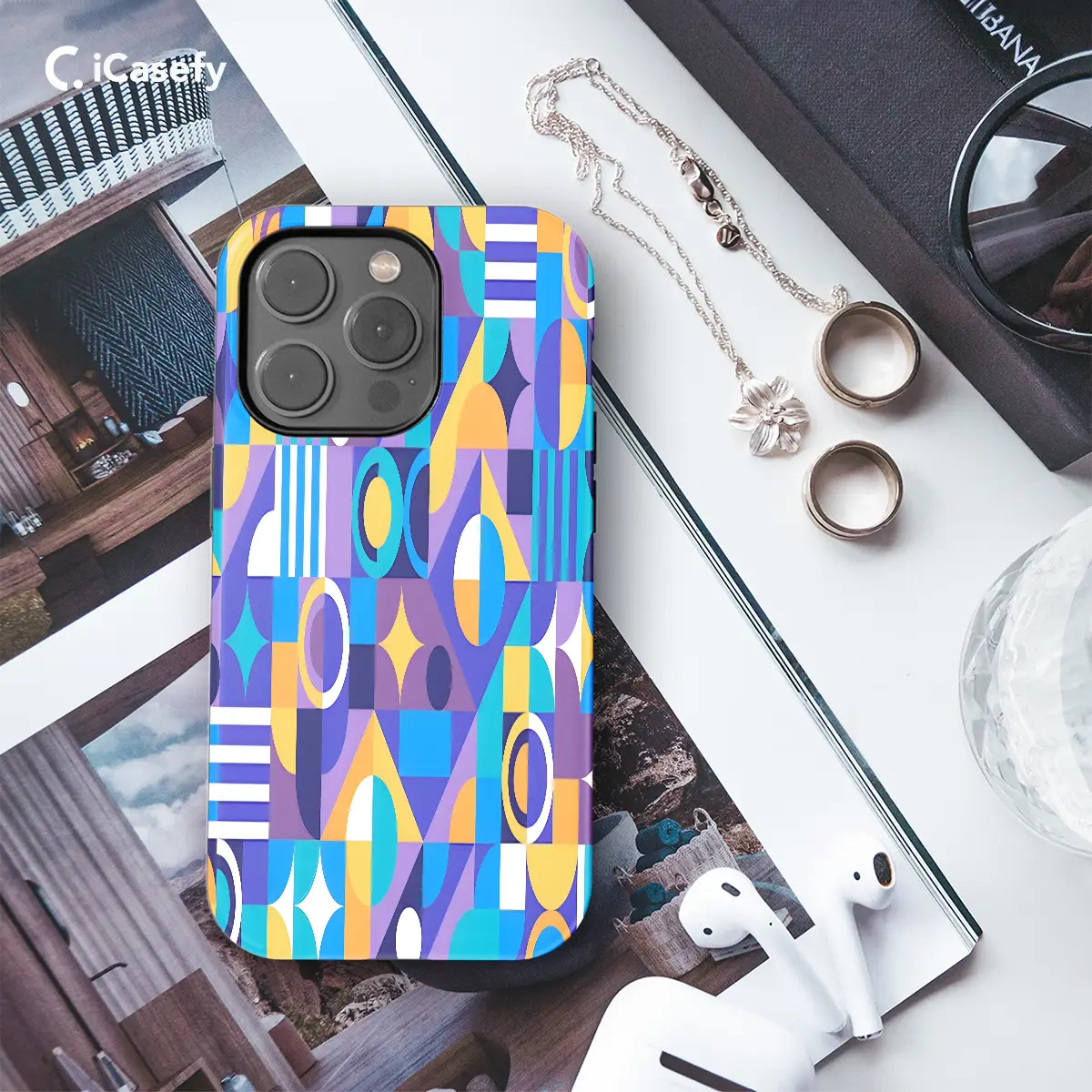 **Versatile and stylish,** this geometric mosaic phone case will add a touch of flair to your device. The trendy design and vibrant colors will make your phone stand out from the crowd, while the durable construction will protect it from bumps and scratches. - **Unique mosaic design:** The eye-catching geometric mosaic pattern adds a touch of personality to your phone. - **Durable construction:** Made from high-quality materials, this case will protect your phone from everyday wear and tear. - **Slim and lightweight:** Despite its durability, this case is slim and lightweight, so it won't add bulk to your phone. - **Precise cutouts:** This case is designed specifically for your iPhone or Samsung phone, so you'll have full access to all ports and buttons. - **Available in a variety of colors:** Choose from a range of vibrant colors to find the perfect match for your style.