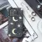 Step into an enchanting midnight garden where the cosmos meets the earth in a captivating design. This intricate pattern features luminous crescent moons, seemingly carved from pale starlight, nestled amongst richly detailed botanical elements. Delicate vines adorned with soft, ethereal blossoms and graceful leaves twist and turn, woven with shimmering golden accents that resemble scattered stardust and celestial bodies. Against a deep, mysterious dark background reminiscent of the night sky, the vintage-inspired illustration evokes a sense of timeless magic and mystical wonder. Perfect for those who are drawn to celestial aesthetics, nature's hidden beauty, and a touch of gothic romance or boho charm, this artful composition offers a unique way to personalize your world. Bring this spellbinding scene to your daily essentials, adding a touch of cosmic elegance and natural grace to your most cherished possessions. This unique artwork transforms ordinary objects into statements of personal style, reflecting a love for the mystical and the beautiful. Experience the allure of a moonlit night forever captured in this exquisite pattern, designed to inspire and delight.