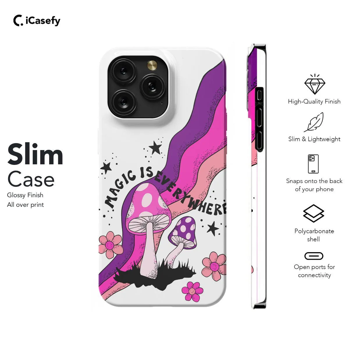 Immerse yourself in psychedelic vibes with our Trippy Mushroom Flower Wavy phone case. Available in Clear, Slim snap-on, and Tough case finishes, each option provides reliable protection while showcasing a mesmerizing blend of mushrooms, flowers, and wavy patterns. Perfect for those who love trippy designs and want to add a splash of color to their device.