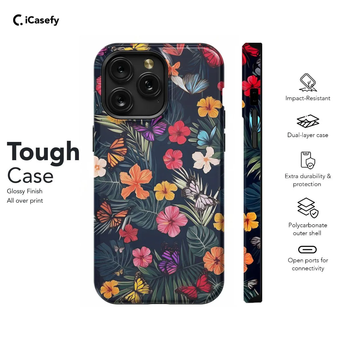 Embrace the beauty of nature with our Tropical Butterfly Leaf Phone Case. Featuring a stunning design inspired by tropical foliage and delicate butterfly motifs, this case brings a touch of vibrancy to your device. Crafted for both style and protection, it safeguards your phone while adding a burst of tropical charm. With precise cutouts for ports and buttons, it ensures seamless functionality. Elevate your phone's look with the captivating allure of our Tropical Butterfly Leaf Phone Case today!