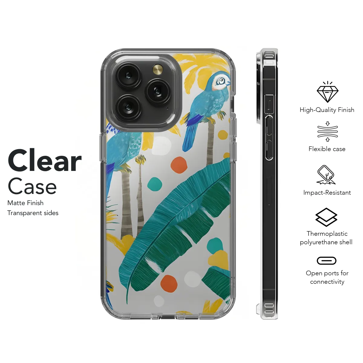 Escape to a tropical paradise with our chic doodle phone case! Emblazoned with vibrant hues and playful designs, this case transforms your phone into a canvas of exotic beauty. Protect your device while embracing the vibrant energy of the tropics, where every glance evokes the sweet sounds of crashing waves and swaying palms.