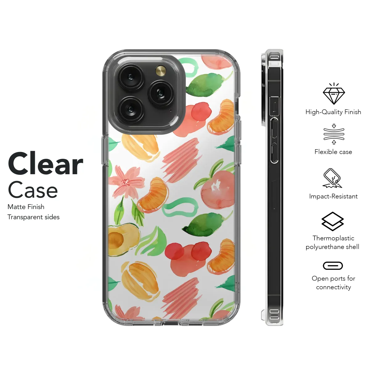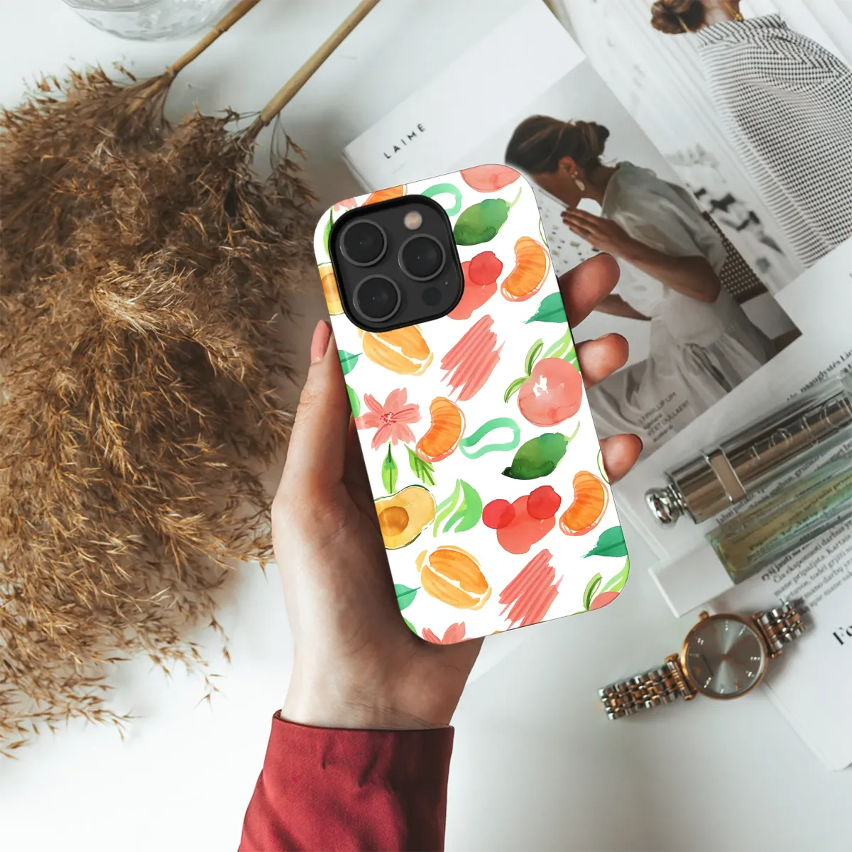 Embrace vibrant summer style with this delightful watercolor design featuring juicy fruits and blossoms. The playful pattern bursts with color, showcasing a cheerful mix of peaches, oranges, avocados, and delicate flowers. This artwork is perfect for adding a touch of fresh, fruity fun to your everyday essentials. The bright, hand-painted aesthetic brings a unique and artistic flair, making it a standout accessory. This high-resolution design ensures crisp, vibrant prints that are sure to turn heads. The versatile print complements various styles and adds a pop of personality to your belongings, making it an ideal gift or a treat for yourself. Experience the joy of summer all year round with this exceptionally cheerful and eye-catching design. Its timeless appeal and bold colors ensure it remains a fashionable statement piece, season after season. The detailed watercolor rendering creates a luxurious look, transforming a simple item into a stylish must-have. Coordinate with complementary accessories for a complete and cohesive look. This design is a perfect blend of art and function, offering both beauty and practicality.