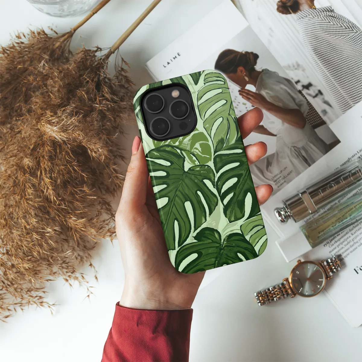 Escape into a tropical paradise with our stunning Tropical Leaf Phone Case! This vibrant and stylish case transforms your device into a leafy haven, featuring lush green leaves against a crisp white backdrop. Its sleek design seamlessly fits iPhone, Samsung, and Pixel devices, providing superior protection from bumps and scratches. The lightweight construction ensures effortless handling, while the precise cutouts allow easy access to all ports and buttons. Elevate your phone's aesthetics and embrace the tropics every time you use it!