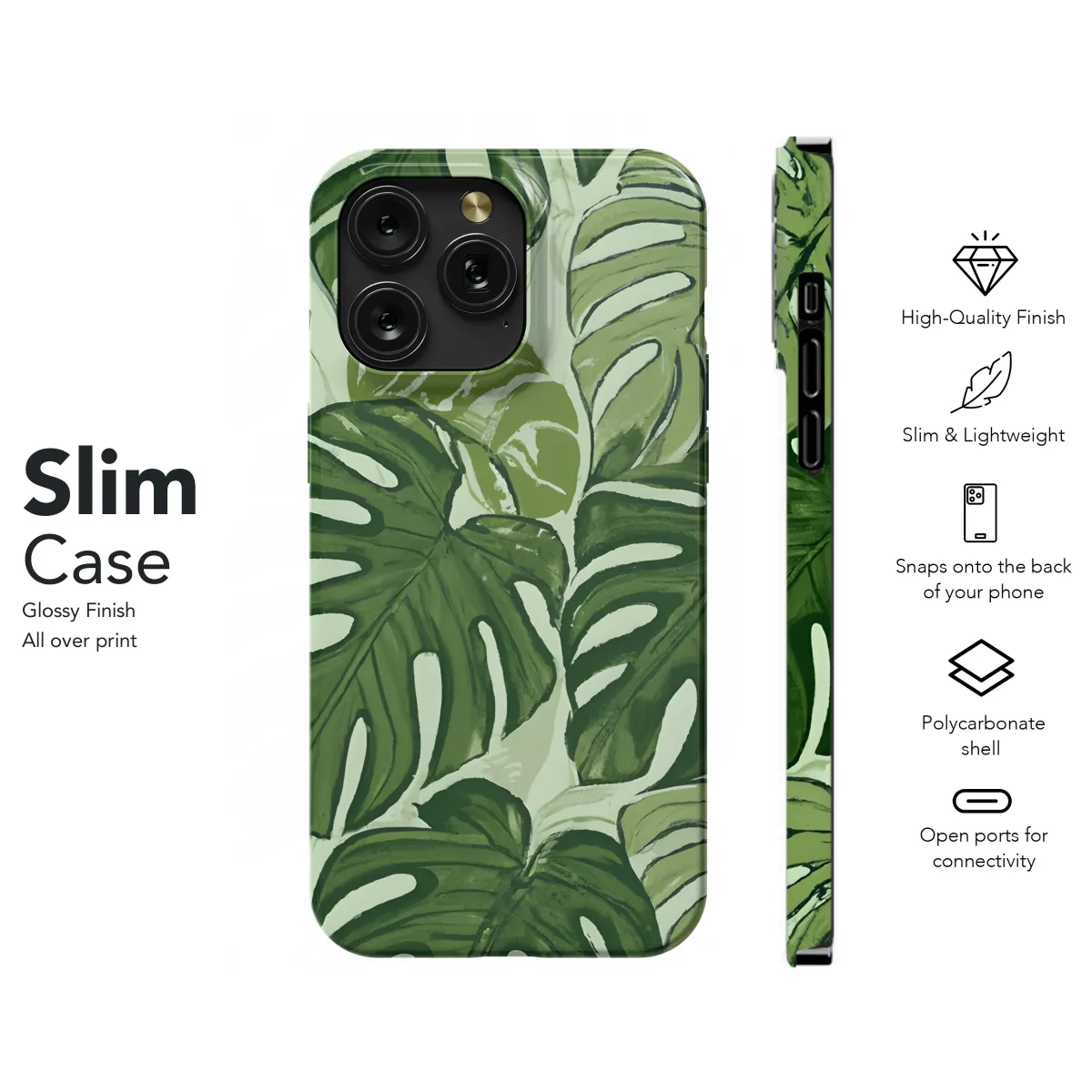 Escape into a tropical paradise with our stunning Tropical Leaf Phone Case! This vibrant and stylish case transforms your device into a leafy haven, featuring lush green leaves against a crisp white backdrop. Its sleek design seamlessly fits iPhone, Samsung, and Pixel devices, providing superior protection from bumps and scratches. The lightweight construction ensures effortless handling, while the precise cutouts allow easy access to all ports and buttons. Elevate your phone's aesthetics and embrace the tropics every time you use it!