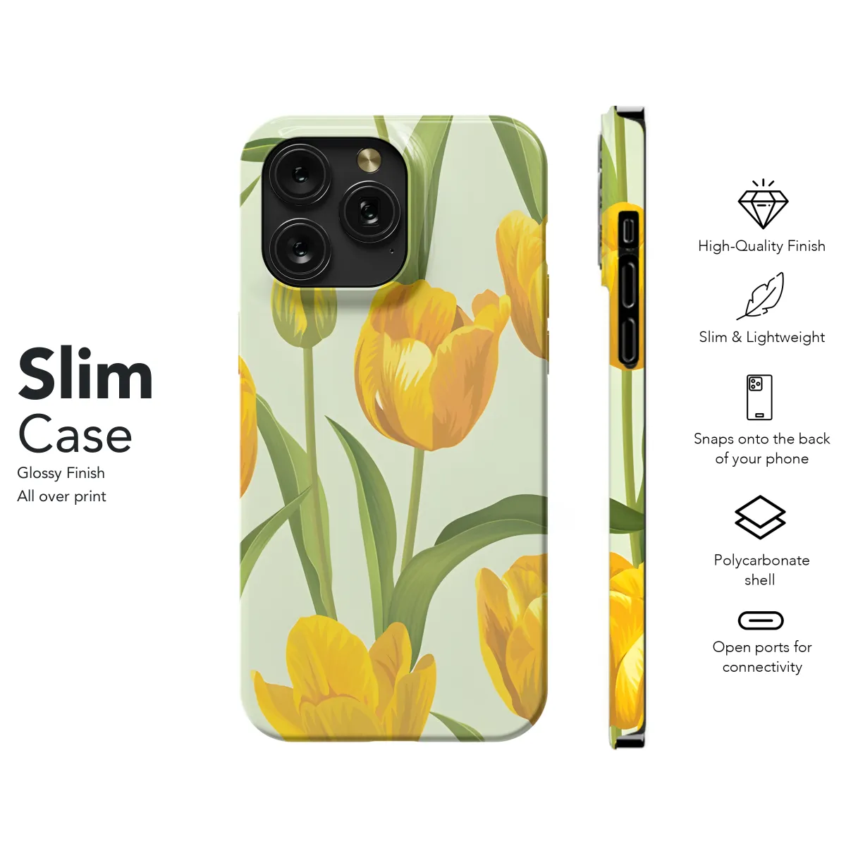 Protect your phone in style with our exclusive Tulip Phone Case. Designed for iPhone, Samsung, and Pixel 3936, this case boasts a vibrant and eye-catching tulip print that adds a touch of elegance to your device. Made from durable materials, it effectively shields your phone from scratches, bumps, and drops, ensuring its longevity. The precise cutouts provide easy access to all buttons, ports, and features, ensuring seamless functionality. With its slim profile and lightweight design, the Tulip Phone Case offers both protection and portability, making it the perfect choice for those who value style and functionality.