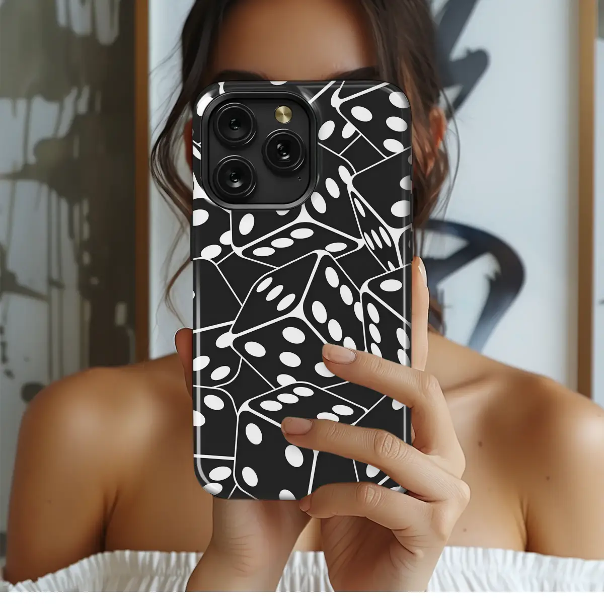 Embrace the electrifying thrill of the unpredictable with this captivating tumbling dice design, a bold statement piece for those who dare to play the game of life. Each die is artistically frozen in a moment of chaotic grace, cascading across the surface to create a dynamic, high-contrast pattern that instantly mesmerizes and draws the eye. The stark black and white palette is pure, classic cool, exuding a timeless sophistication that feels both retro and strikingly modern. This design is perfect for the minimalist who loves a pop of graphic energy or the vintage game enthusiast with an appreciation for classic motifs. Feel the palpable energy of game night, the electric anticipation of a lucky roll, and the sophisticated edge of a high-roller's confident style every time you glance at it. This isn't just a simple pattern; it's an emblem of fortune, a visual lucky charm, and a conversation starter that speaks to chance and strategy. Let this unique graphic art piece be your daily reminder to take risks, make bold moves, and confidently create your own luck. It’s the ultimate accessory to showcase your playful spirit and sharp, distinctive style, making it an unforgettable and thoughtful gift for the passionate gamer, the ambitious dreamer, or anyone who appreciates striking visual art that tells a compelling story of fortune and fun.