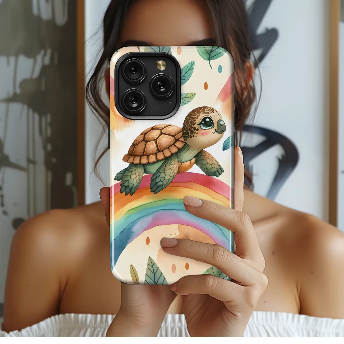 Protect your phone in style with our vibrant Turtle Rainbow Phone Case! This eye-catching case features a playful turtle design adorned with a vibrant rainbow, adding a touch of whimsical charm to your device. Compatible with iPhone, Samsung, and Pixel models, it snugly fits your phone, shield it from scratches, drops, and everyday wear and tear. The case's durable material ensures long-lasting protection, while its slim profile maintains the sleekness of your phone.