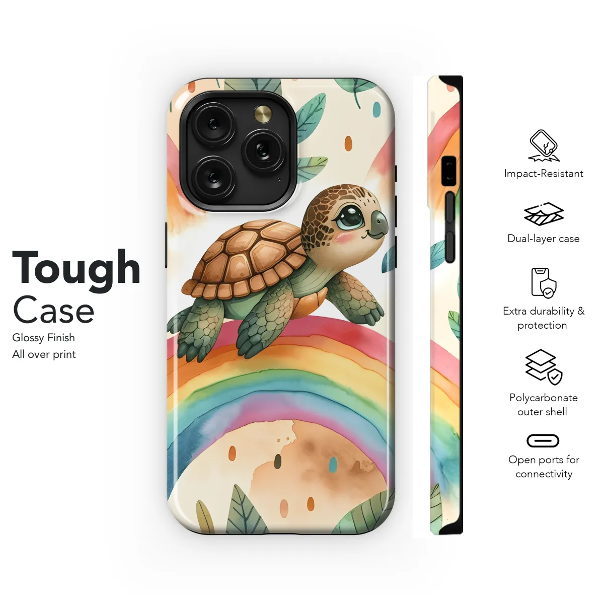 Protect your phone in style with our vibrant Turtle Rainbow Phone Case! This eye-catching case features a playful turtle design adorned with a vibrant rainbow, adding a touch of whimsical charm to your device. Compatible with iPhone, Samsung, and Pixel models, it snugly fits your phone, shield it from scratches, drops, and everyday wear and tear. The case's durable material ensures long-lasting protection, while its slim profile maintains the sleekness of your phone.