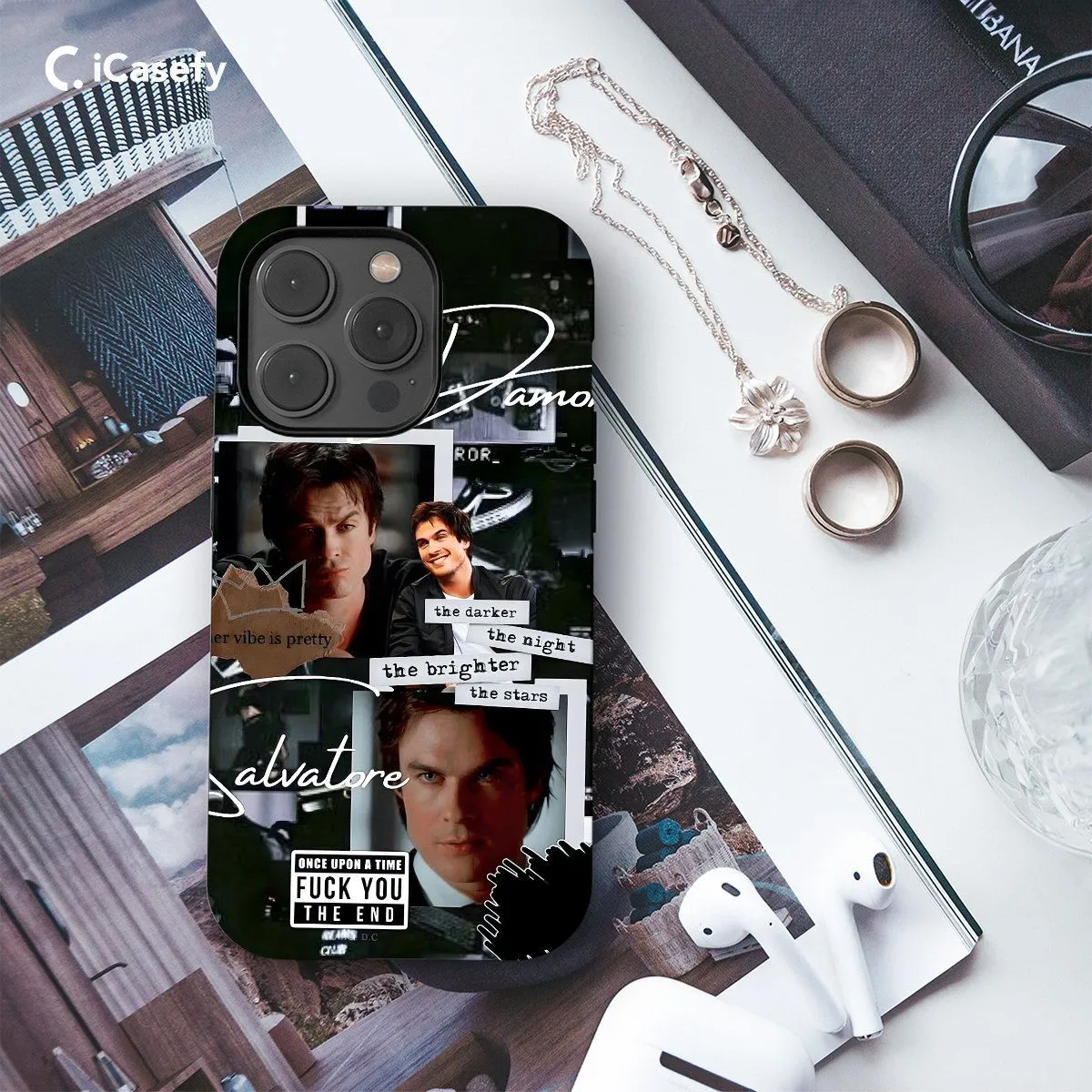 Immerse yourself in the world of The Vampire Diaries with our Salvatore Damon Collage Phone Case. Featuring a captivating collage of images portraying the charismatic Salvatore Damon, this case captures the essence of his eternal charm. Crafted for both style and protection, it safeguards your phone while showcasing your love for the series. With precise cutouts for ports and buttons, it ensures seamless functionality. Elevate your phone's look and channel the allure of Salvatore Damon with our TVD Salvatore Damon Collage Phone Case today!