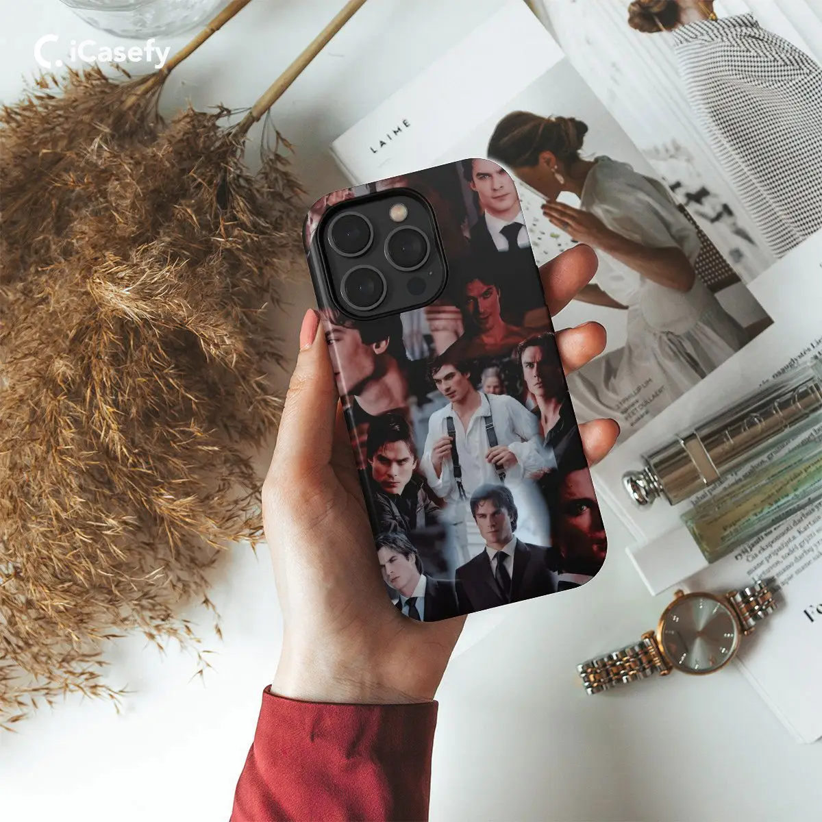 Introducing our TVD The Vampire Diaries Damon Salvatore Collage phone case, a tribute to the enigmatic and charismatic character from the beloved series. Featuring a collage of iconic images and symbols associated with Damon Salvatore, this case allows you to carry a piece of Mystic Falls with you wherever you go. Show your love for the show and your admiration for Damon while protecting your device in style.