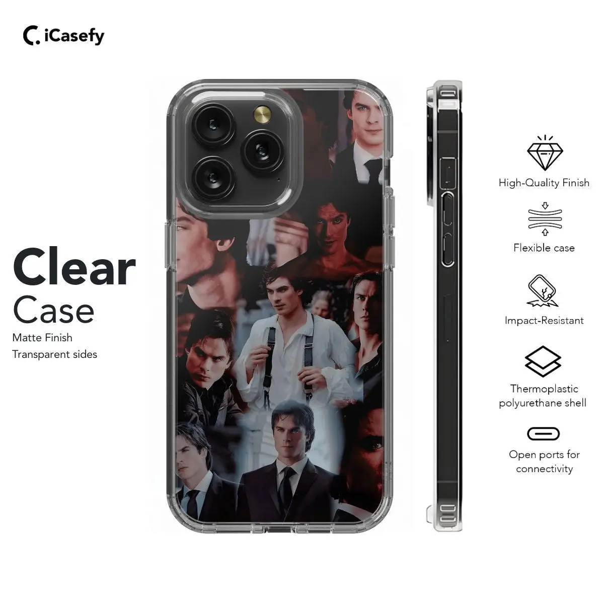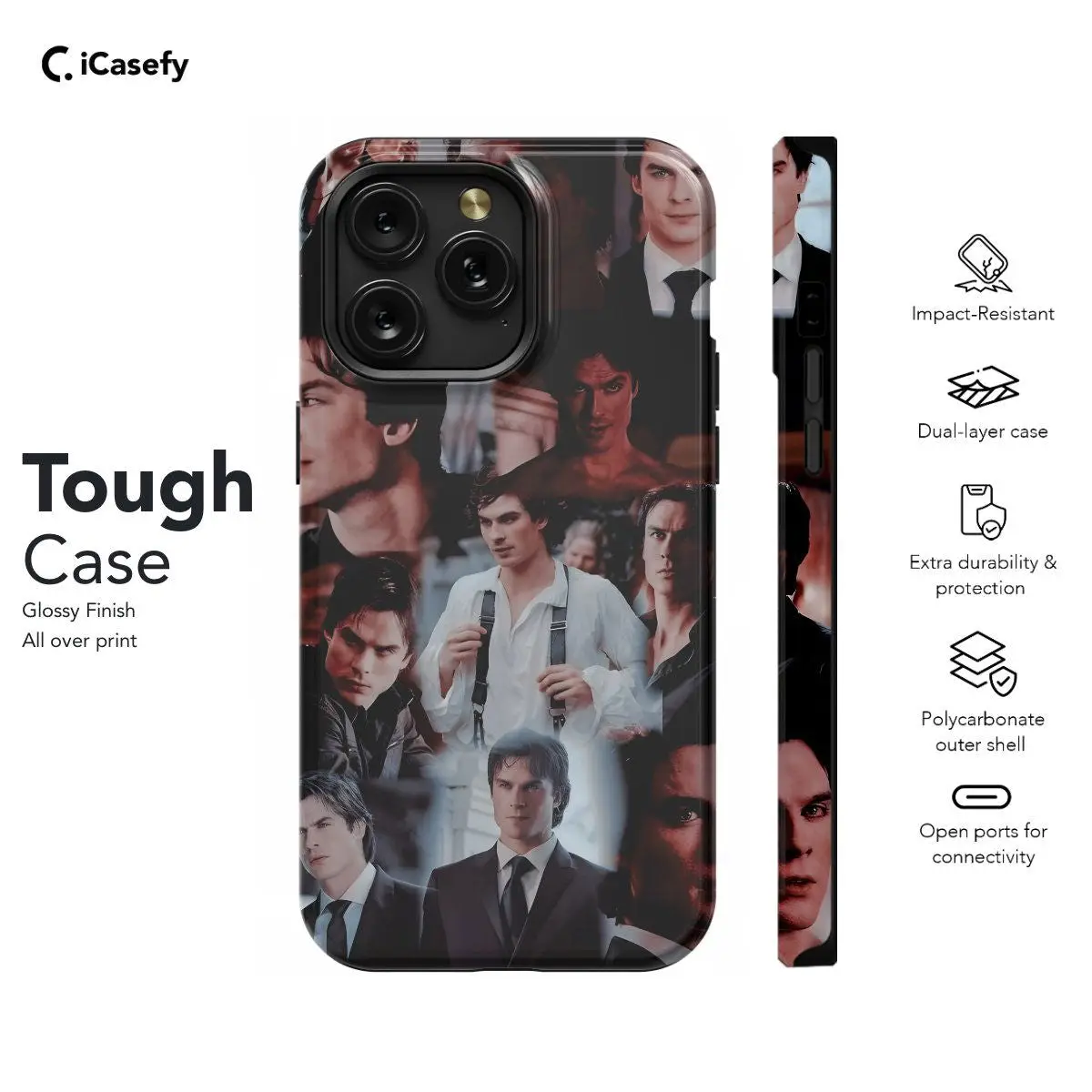 Introducing our TVD The Vampire Diaries Damon Salvatore Collage phone case, a tribute to the enigmatic and charismatic character from the beloved series. Featuring a collage of iconic images and symbols associated with Damon Salvatore, this case allows you to carry a piece of Mystic Falls with you wherever you go. Show your love for the show and your admiration for Damon while protecting your device in style.