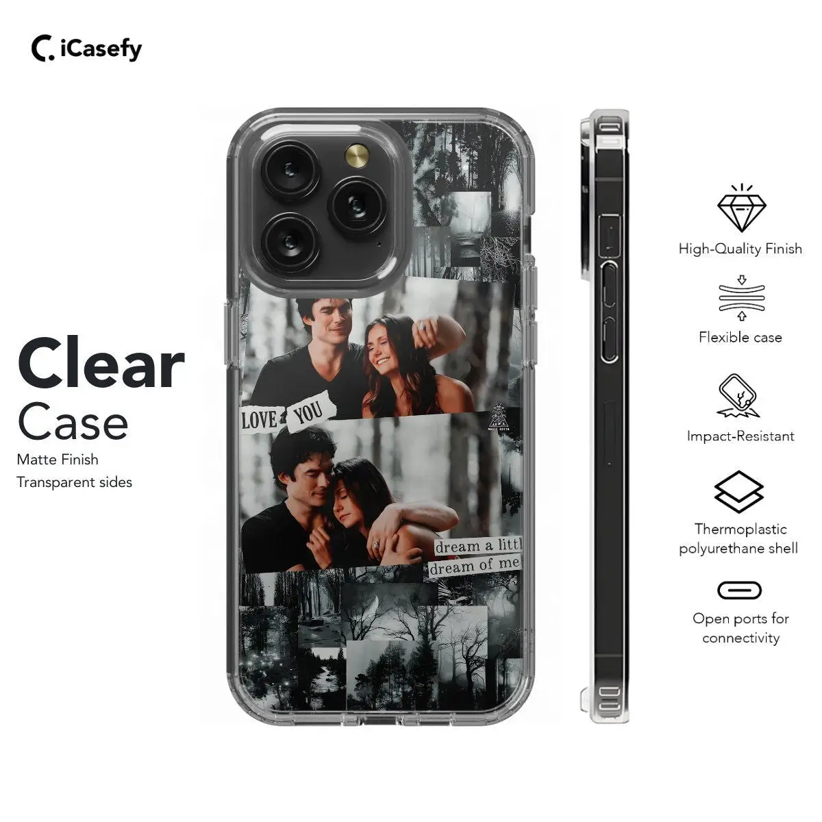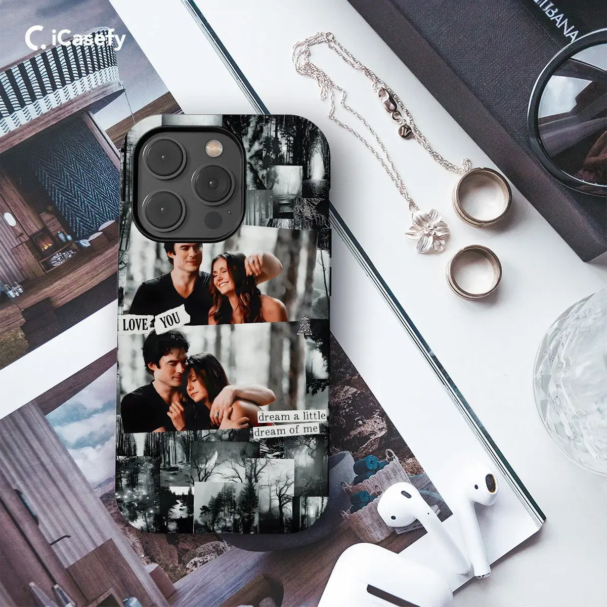 Celebrate the enigmatic charm of Damon Salvatore from The Vampire Diaries with this captivating phone case featuring a collage of iconic moments from the series. From his smoldering gaze to his moments of vulnerability and redemption, this case pays homage to Damon's complex character arc. Carry a piece of Mystic Falls with you wherever you go and let your device showcase your admiration for this beloved vampire with this stylish accessory.