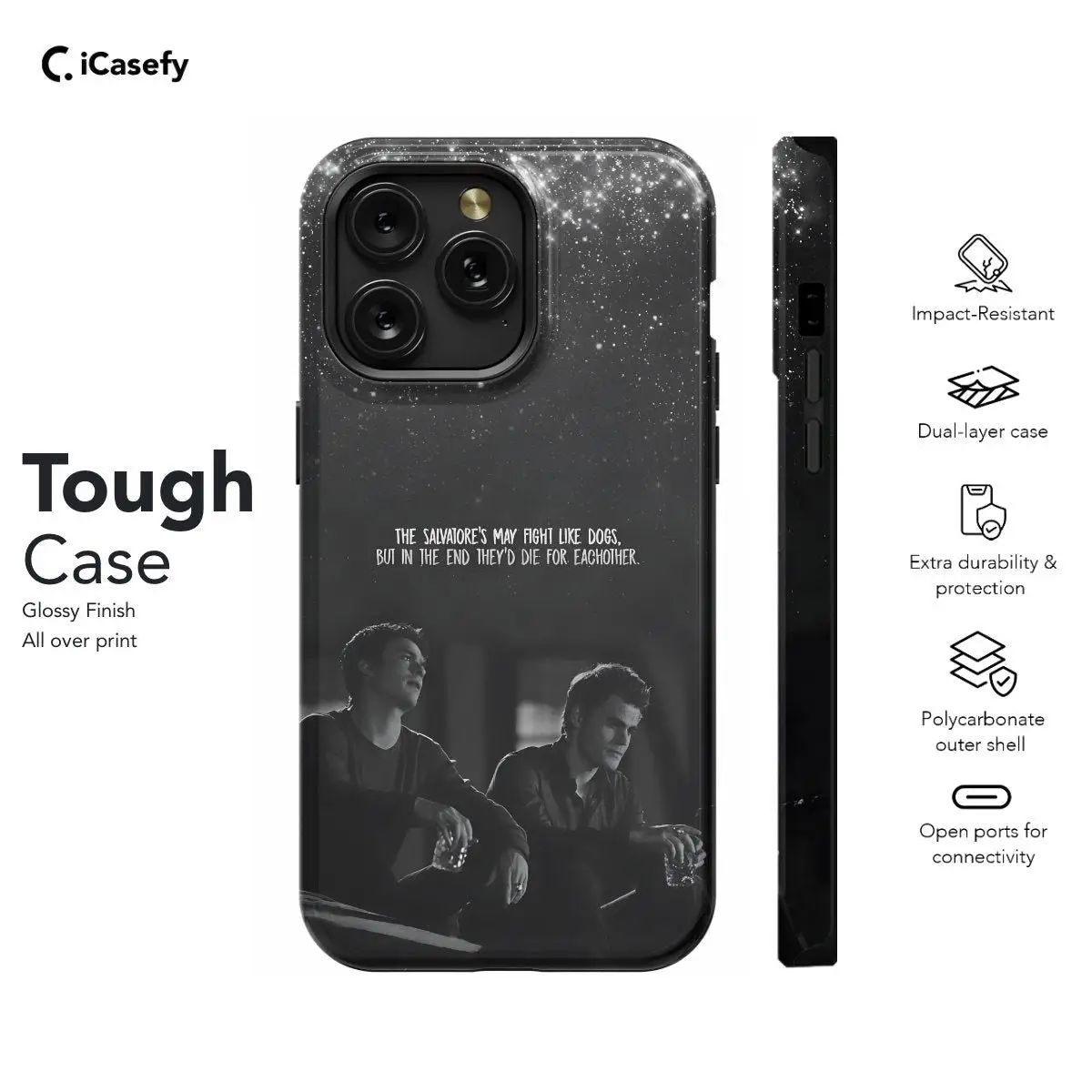 Discover a sleek and durable phone case featuring an iconic quote from The Vampire Diaries' Damon Salvatore. Add a touch of supernatural charm to your device with this stylish accessory.
