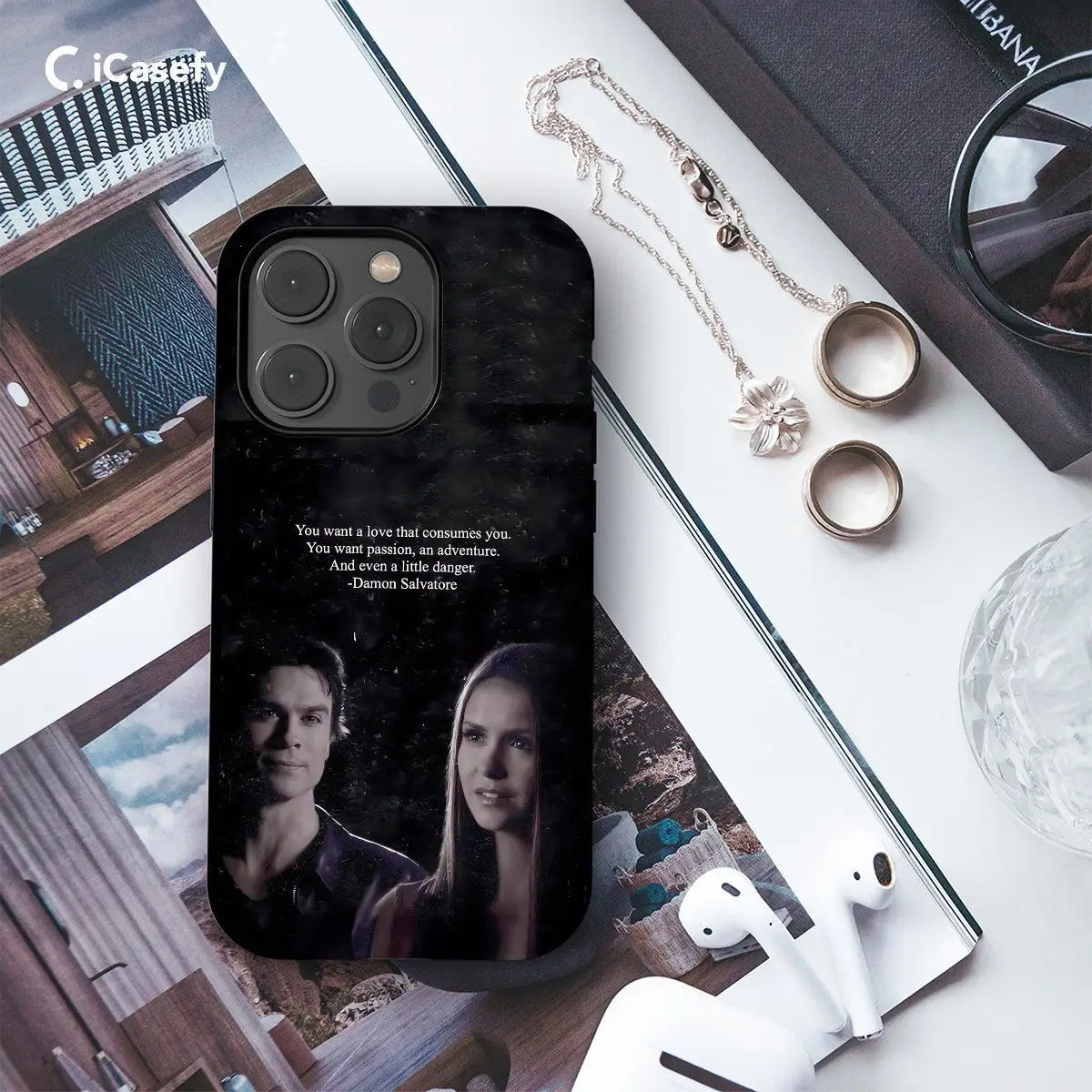 Introducing our TVD The Vampire Diaries Damon Salvatore Quote phone case, featuring an iconic quote from the charismatic character. Embrace Damon Salvatore's memorable words and bring a piece of Mystic Falls with you wherever you go. Protect your device in style while showcasing your love for the show and its beloved characters.