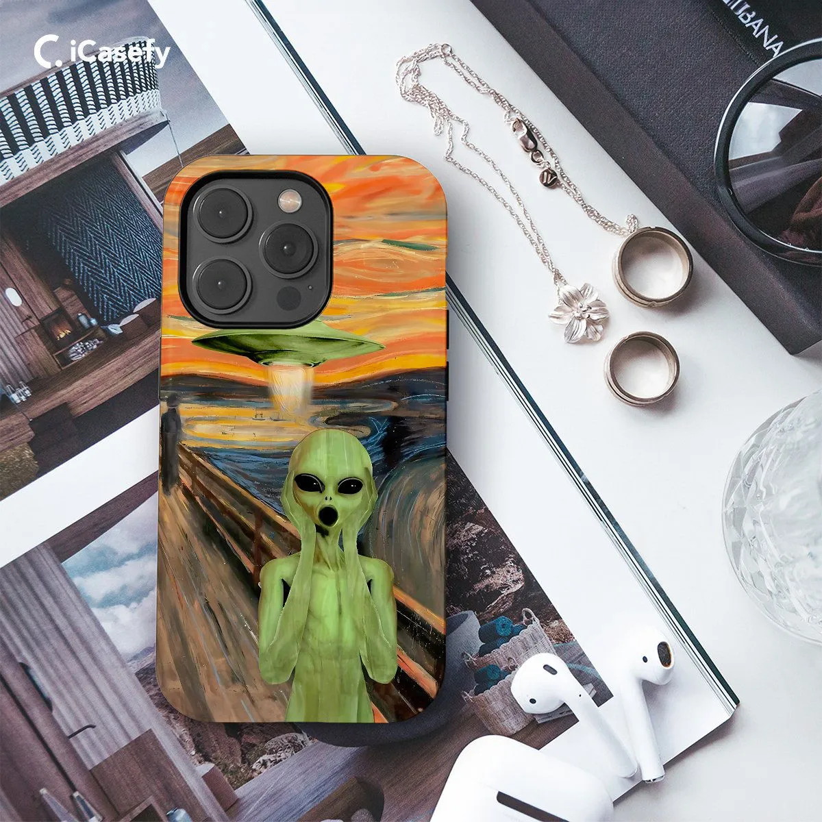 Experience an eerie encounter with our UFO Scream phone case. This captivating design merges the iconic Scream mask with the mysterious allure of unidentified flying objects. Against a backdrop of swirling stars and cosmic chaos, the Scream mask takes on an otherworldly twist, evoking a sense of intrigue and suspense. Crafted with precision, the case features precise cutouts for easy access to ports and buttons, ensuring seamless functionality. Its slim profile and durable construction offer reliable protection against daily wear and tear. Make a bold statement and delve into the unknown with our UFO Scream phone case. Order now and add an extraterrestrial edge to your device!