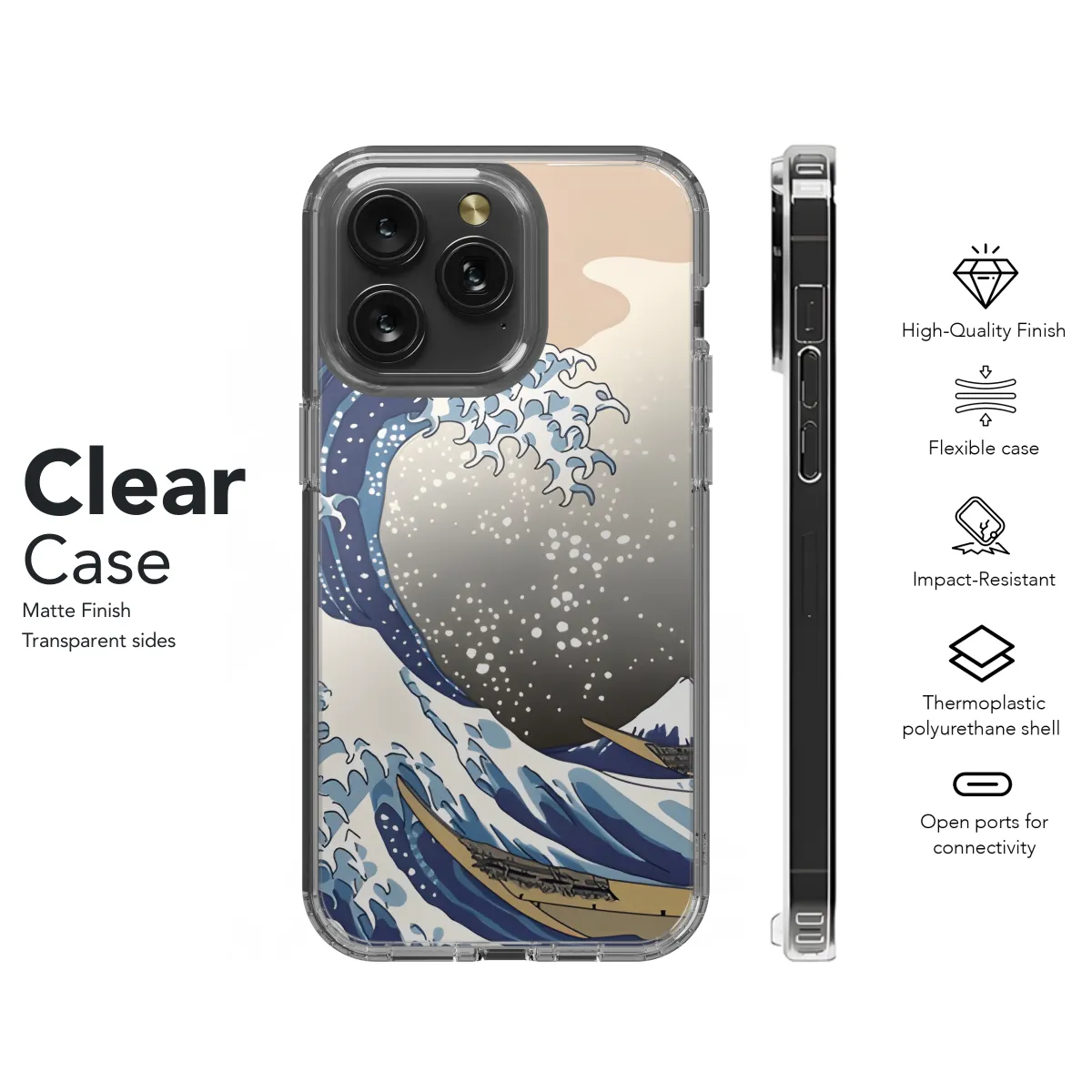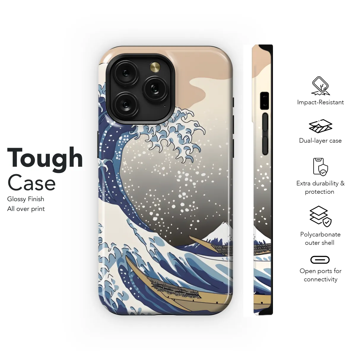 Embrace the iconic beauty of Japan with our Ukiyoe Wave Phone Case! Inspired by Katsushika Hokusai's renowned masterpiece, this case captures the dynamic energy and serenity of the Great Wave. The intricate artwork adorns your device, adding a touch of traditional elegance to your modern tech. Protect your phone in style while paying homage to Japanese art and culture with this stunning Ukiyoe Wave Phone Case.