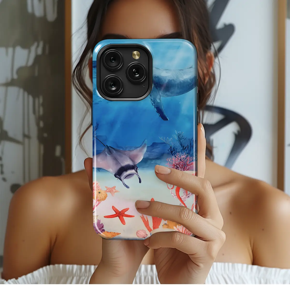 Dive into a world of underwater enchantment with our stunning phone case! Featuring an exquisite illustration of a vibrant underwater landscape, this case transforms your phone into a captivating portal to the depths of the ocean. From swaying seahorses to graceful dolphins, each intricate detail captures the mesmerizing beauty of the marine realm. Protect your device in style and ignite your wanderlust with this ethereal masterpiece.