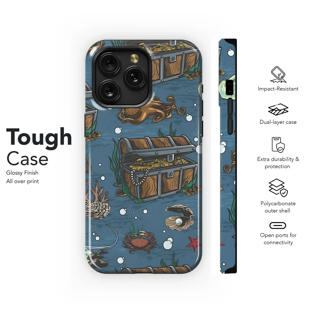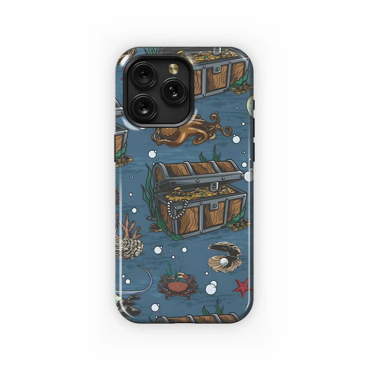 Dive into an underwater adventure with this captivating design, perfect for adding a touch of nautical charm to your favorite device. This vibrant artwork features a treasure trove of marine life, including detailed illustrations of treasure chests overflowing with gold doubloons, graceful stingrays gliding through the water, and curious octopuses exploring the depths. Alongside these, you'll find intricate coral formations, delicate pearl-bearing oysters, and charming starfish, all brought together by the constant stream of bubbles rising to the surface. The rich color palette and detailed artwork evoke a sense of mystery and exploration, making this design a unique and eye-catching accessory. It's perfect for anyone who loves the ocean, pirate lore, or simply appreciates intricate and visually stunning art. This design is an ideal gift for the seafaring soul, or a unique way to express your own sense of adventure and love for the sea. Let this underwater fantasy transform your daily experience with its unique aesthetic, sure to inspire stories and spark conversations wherever you go.