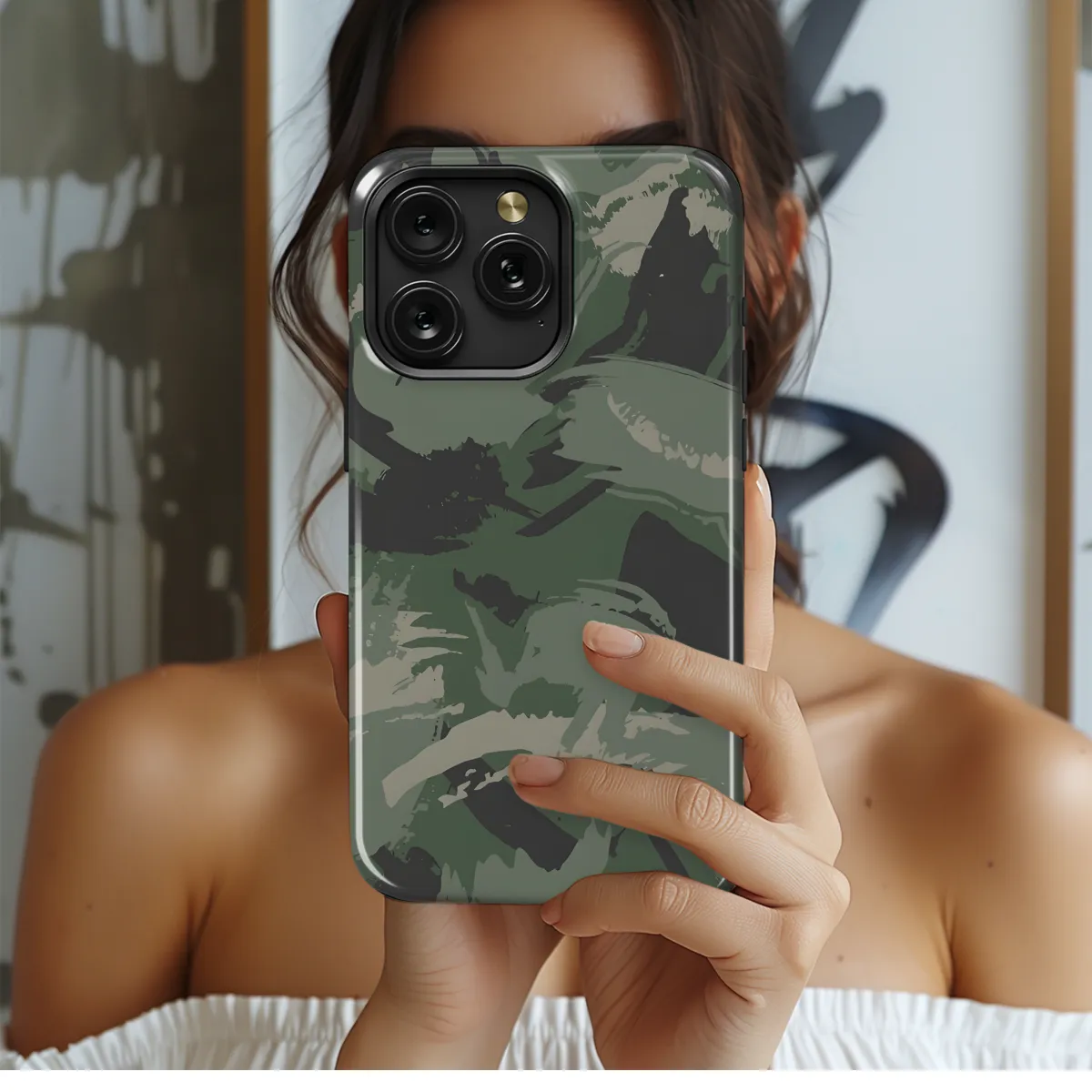 **Urban Camo Phone Case** Stay protected in style with our sleek and rugged urban camo phone case. Engineered to withstand the rigors of everyday life, it provides exceptional protection from drops, bumps, and scratches. **Features:** * Durable construction for ultimate protection * Effortless grip for secure handling * Slim profile that won't add bulk * Compatible with iPhone, Samsung, and Pixel devices * Urban camouflage pattern that adds a touch of edge to your device