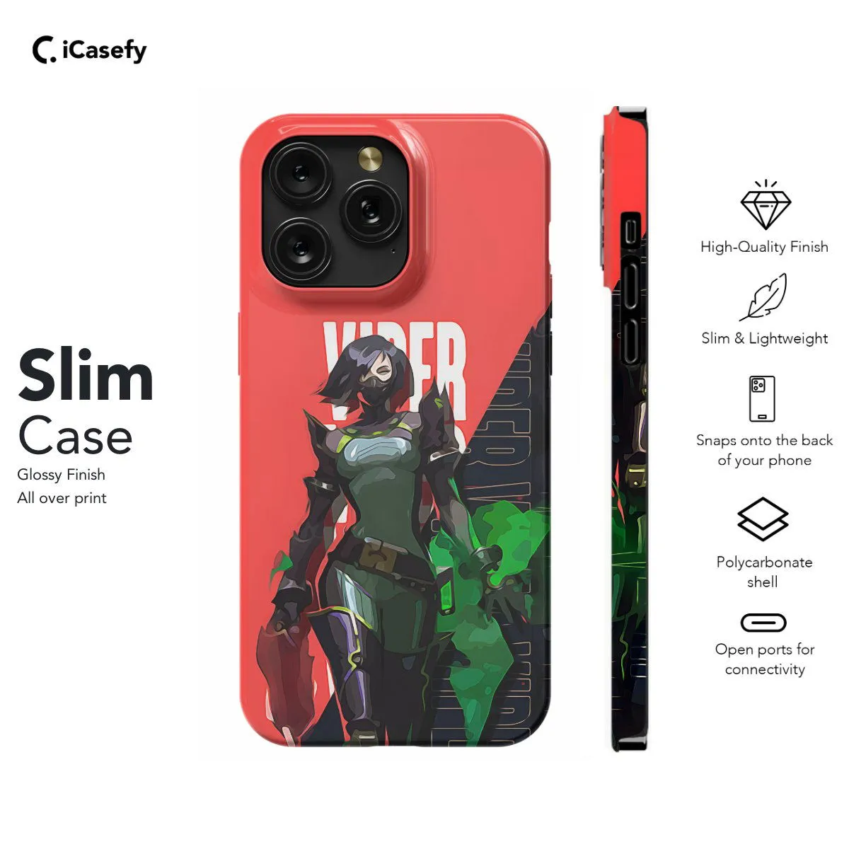 Enter the tactical realm of Valorant with this sleek phone case featuring Viper, the venomous controller agent. With her toxic abilities and strategic utility, Viper dominates the battlefield with deadly precision. Show your affinity for this cunning agent and the thrilling gameplay of Valorant wherever you go with this stylish accessory, perfect for any fan of the game.