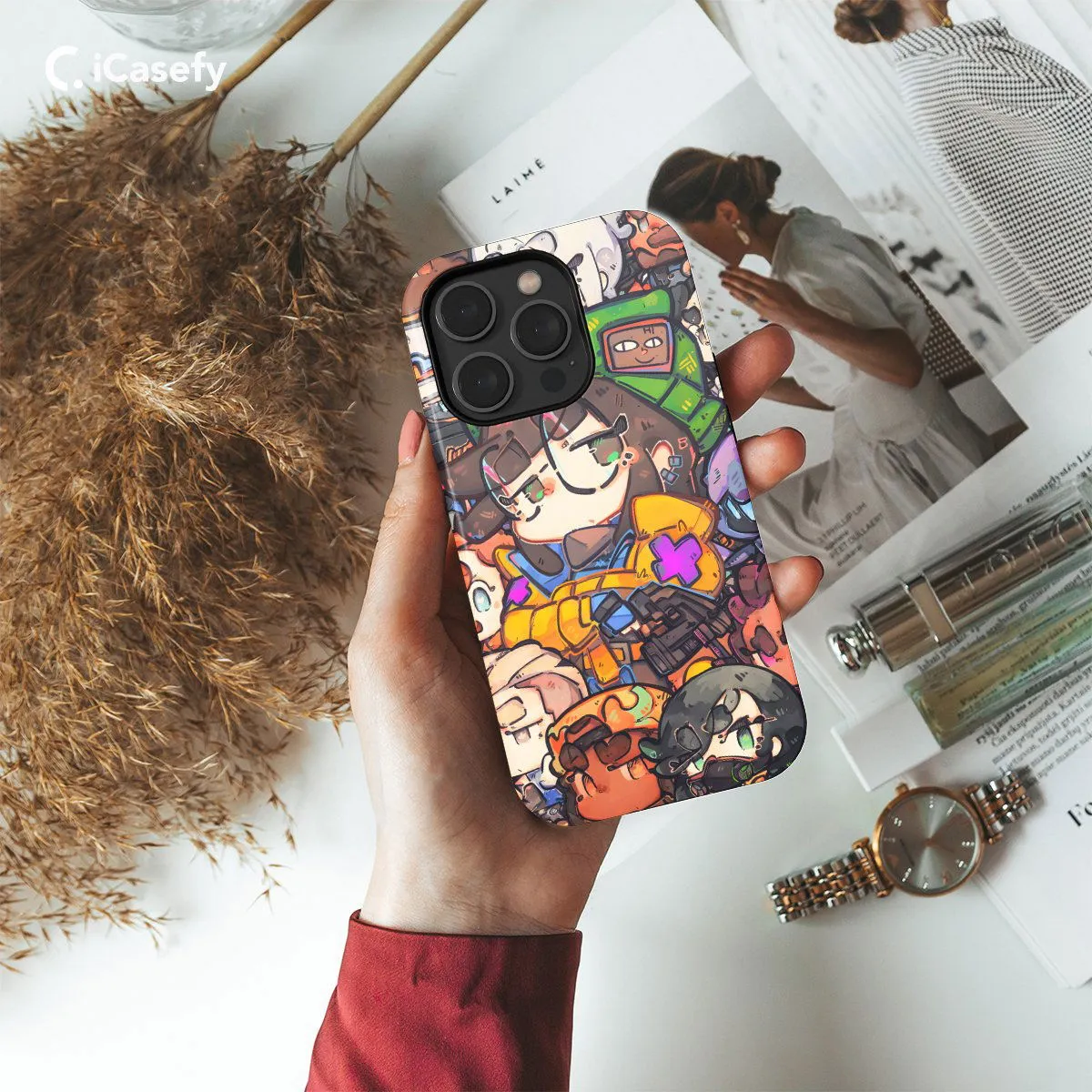 Immerse yourself in the world of Valorant with this sleek and stylish phone case featuring iconic elements from the game. From the emblematic Valorant logo to striking images of your favorite agents, this case is a must-have accessory for any Valorant enthusiast. Carry the spirit of tactical gameplay and strategic prowess with you wherever you go, and let your device showcase your love for one of the most popular first-person shooters of today.