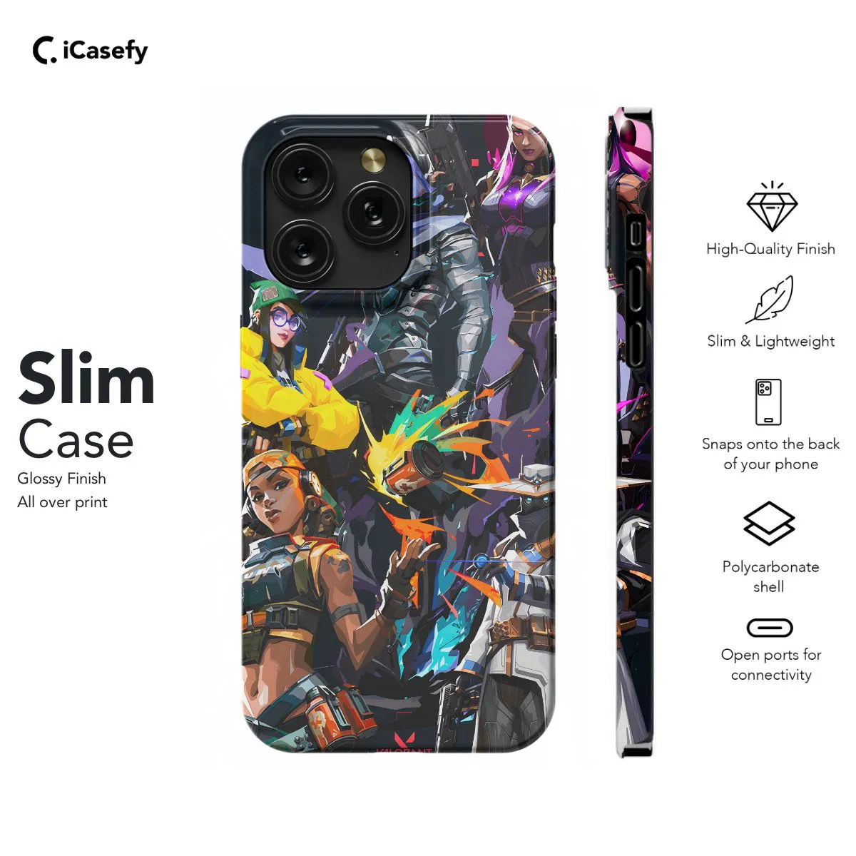 Celebrate your love for Valorant with this sleek and stylish phone case featuring iconic elements from the game. From the emblematic Valorant logo to striking images of your favorite agents, this case is perfect for any Valorant enthusiast. Carry the spirit of strategic gameplay and competitive prowess with you wherever you go, and let your device showcase your passion for one of the most popular first-person shooters of today.