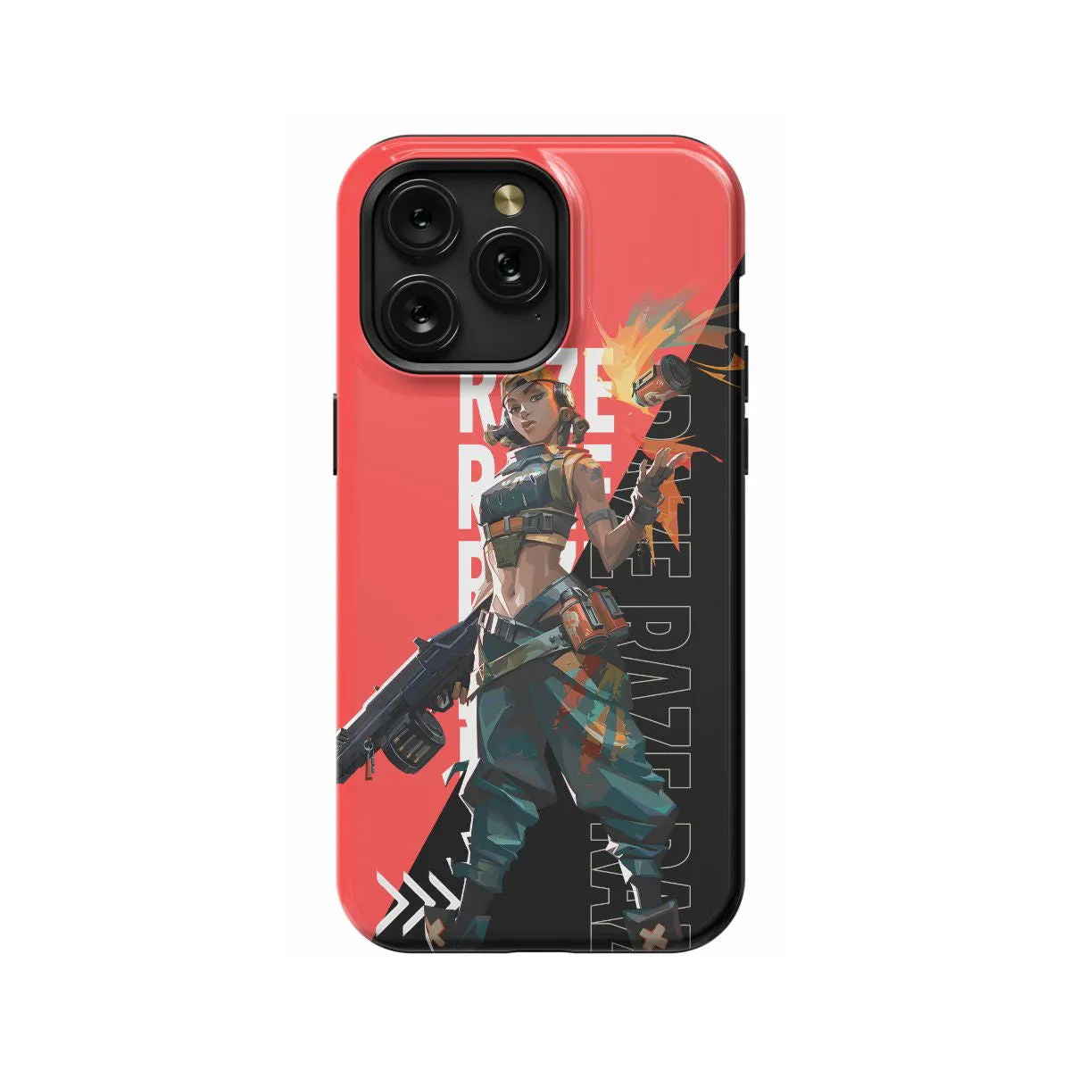 Immerse yourself in the explosive action of Valorant with this dynamic Raze-themed phone case. Inspired by the fierce and fiery character from the game, this case is a tribute to her explosive abilities and daring playstyle. Elevate your device with the adrenaline-fueled energy of Valorant and showcase your love for this popular tactical shooter wherever you go.