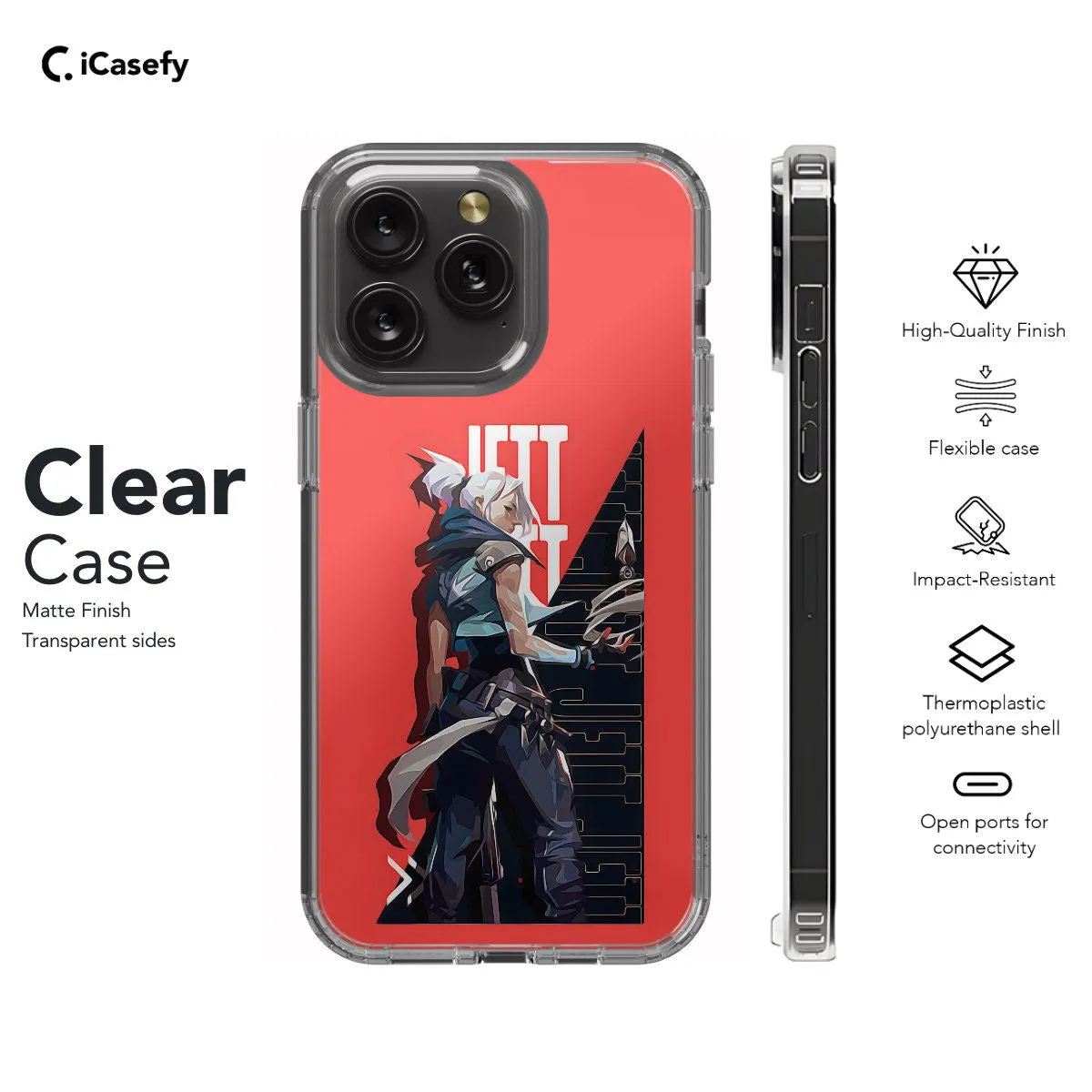 Step into the world of Valorant with our Jett Phone Case. Inspired by the agile and swift agent, Jett, this case embodies unrivaled precision and skill. Crafted for both style and protection, it safeguards your phone while showcasing your love for the game. With precise cutouts for ports and buttons, it ensures seamless functionality. Elevate your gaming experience and show off your admiration for Jett with our Valorant Jett Phone Case today!