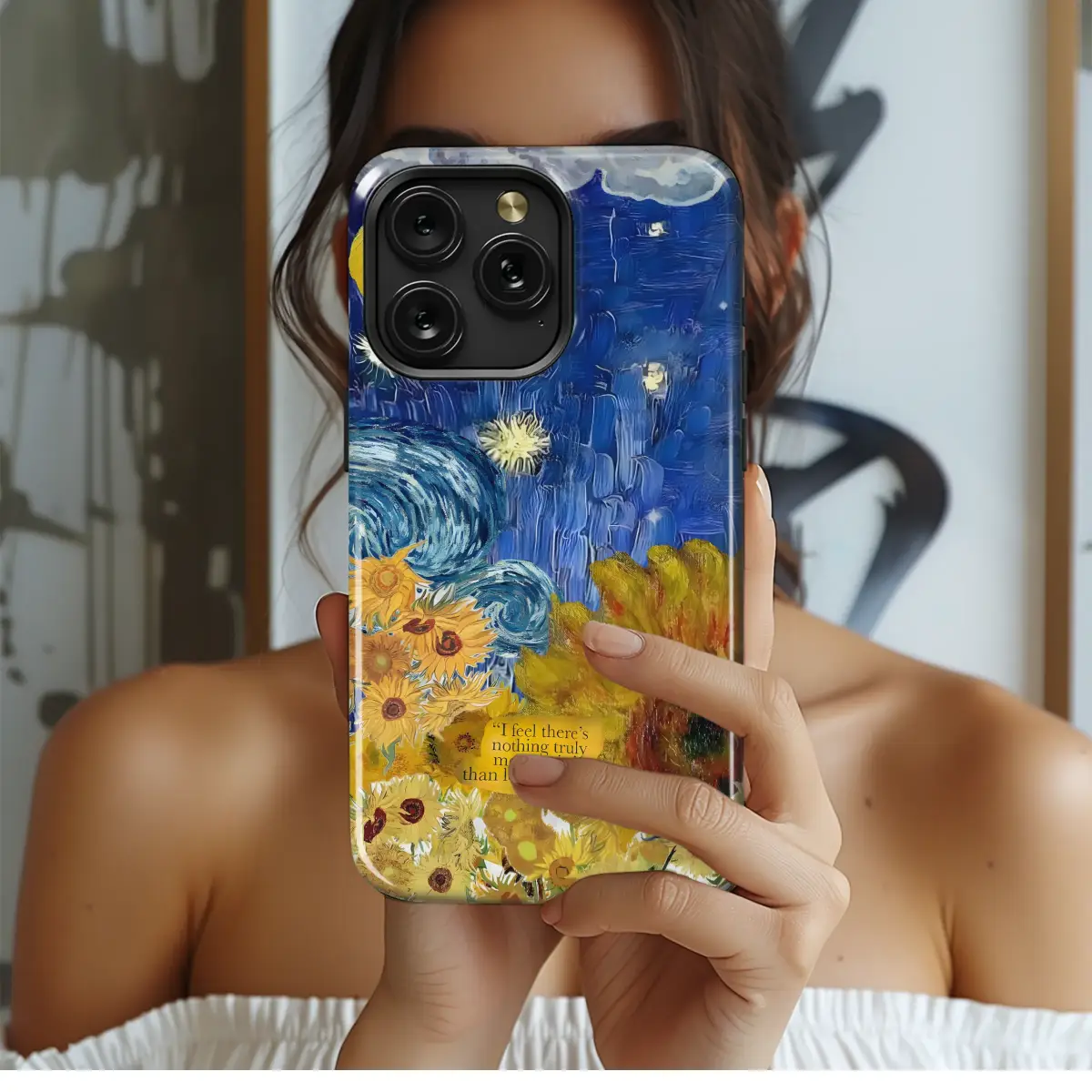 Embrace artistic expression with this vibrant design, a captivating blend of Van Gogh's iconic Starry Night and Sunflowers. The swirling blues of the night sky meet the warm, radiant yellows of sunflowers, creating a visually stunning masterpiece. A poignant quote by the artist himself, "I feel there's nothing truly more artistic than loving people," adds a layer of depth and meaning, transforming this into more than just a visual; it's a statement. This high-quality print is perfect for those who appreciate beauty, art, and the power of human connection. Showcase your individual style with this unique and expressive design, a conversation starter that reflects your passion for art and life's simple joys. This piece is expertly printed using vibrant, long-lasting inks to ensure your design remains vivid and beautiful. Add a touch of artistic flair to your everyday life and share the beauty of Van Gogh's legacy. The design is easily applied and provides exceptional protection. A perfect gift for art lovers and those who appreciate meaningful designs. Secure yours today and let your personal style shine.