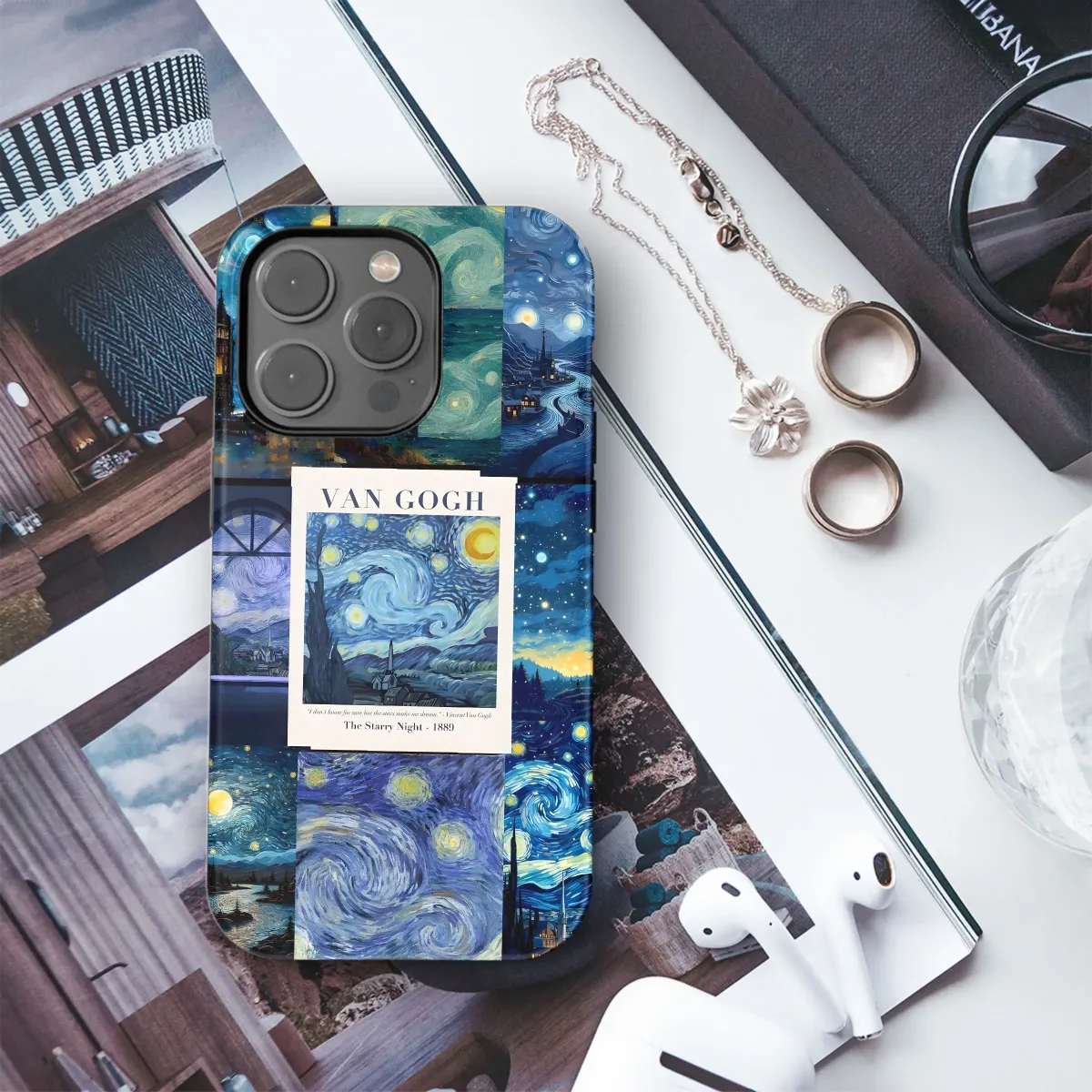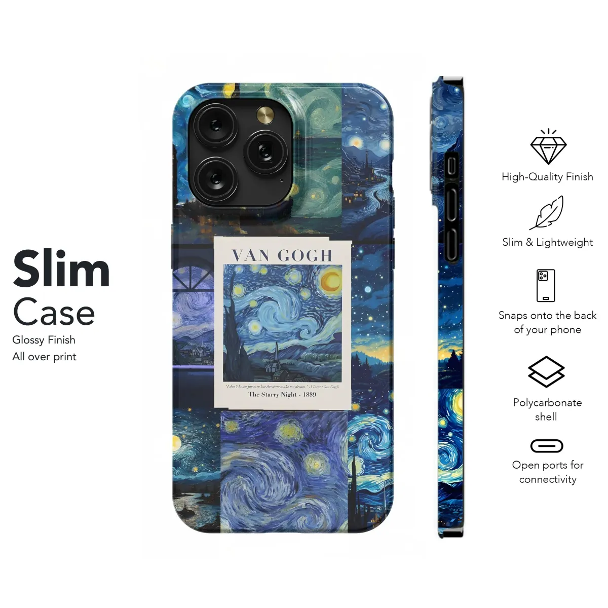 Adorn your essential tech companion with a touch of timeless artistry! This stunning design features a captivating collage inspired by Vincent van Gogh's iconic "Starry Night." Swirling brushstrokes of blues and yellows dance across the surface, bringing a vibrant, artistic flair to your everyday carry. Imagine carrying a miniature masterpiece, showcasing your love for fine art and classic paintings. The rich colors and textural details evoke a sense of wonder and inspire creativity. Perfect for art lovers, Van Gogh enthusiasts, and anyone who appreciates a touch of elegance. This beautiful artwork not only offers a unique aesthetic but also serves as a conversation starter. Elevate your style with this masterpiece on the go, adding a touch of sophisticated charm to your tech life. Express yourself and embrace the beauty of art with this artistic rendition of Starry Night.