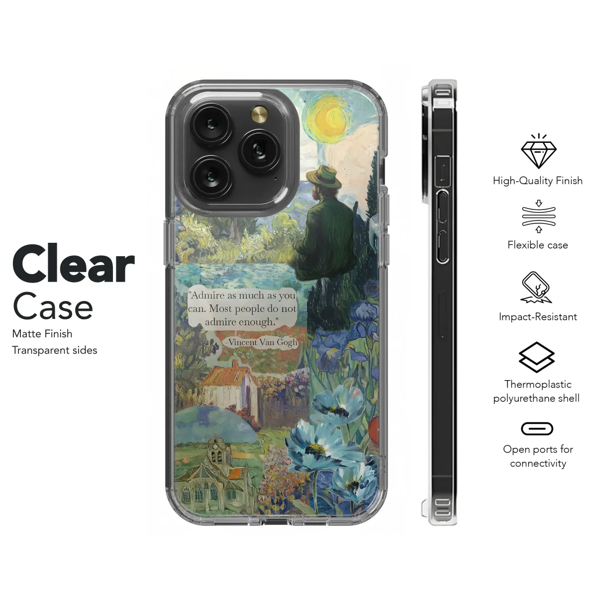 Elevate your style with this vibrant, artistic protective shell. Featuring a captivating collage inspired by the iconic works of Vincent van Gogh, this design showcases a breathtaking blend of his signature landscapes, self-portraits, and expressive florals. The included quote, "Admire as much as you can. Most people do not admire enough," serves as a poignant reminder to embrace beauty and appreciate the world around us. This unique piece is a perfect expression of individuality and artistic appreciation, adding a touch of sophisticated charm to your daily life. Crafted with high-quality materials for optimal durability and a comfortable feel, this protective layer is as aesthetically pleasing as it is practical. Its striking visuals will spark conversations and showcase your refined taste, turning your everyday object into a miniature work of art. Transform your accessory into a personal statement reflecting your love for art and the profound words of a master. This design is not just protection; it’s a wearable masterpiece.