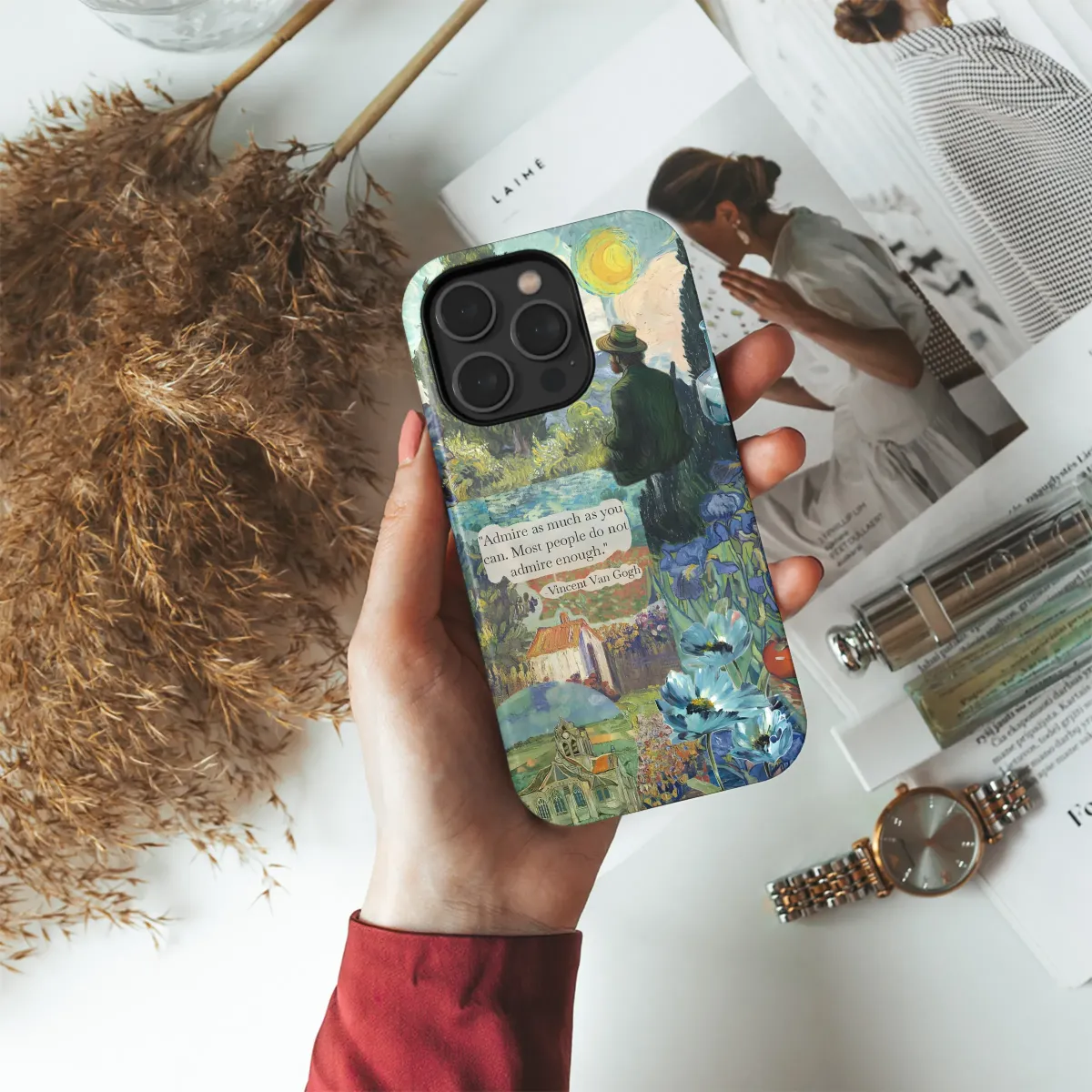 Elevate your style with this vibrant, artistic protective shell. Featuring a captivating collage inspired by the iconic works of Vincent van Gogh, this design showcases a breathtaking blend of his signature landscapes, self-portraits, and expressive florals. The included quote, "Admire as much as you can. Most people do not admire enough," serves as a poignant reminder to embrace beauty and appreciate the world around us. This unique piece is a perfect expression of individuality and artistic appreciation, adding a touch of sophisticated charm to your daily life. Crafted with high-quality materials for optimal durability and a comfortable feel, this protective layer is as aesthetically pleasing as it is practical. Its striking visuals will spark conversations and showcase your refined taste, turning your everyday object into a miniature work of art. Transform your accessory into a personal statement reflecting your love for art and the profound words of a master. This design is not just protection; it’s a wearable masterpiece.