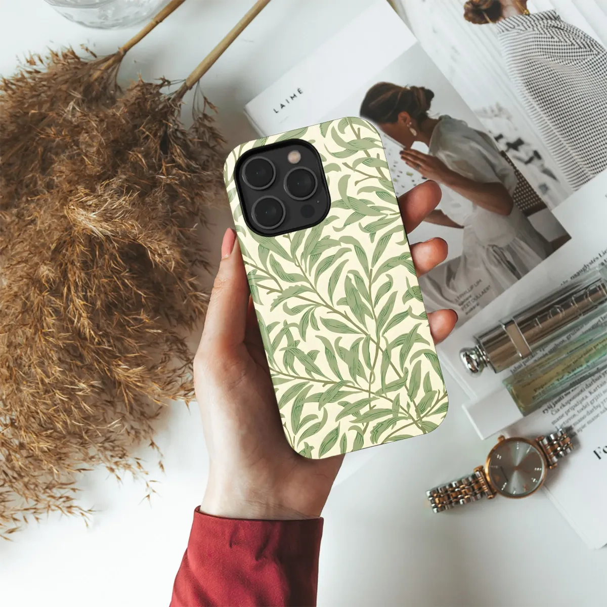 Immerse yourself in the timeless beauty of this captivating botanical pattern, a design destined to bring a touch of nature's elegance to your essential daily accessories. This exquisite seamless print, reminiscent of classic Arts and Crafts movement artistry, features a delicate dance of stylized green leaves and flowing branches set against a serene, light-toned background. The intricate detail captures the organic rhythm of nature, offering a sense of calm and sophistication. The rich palette of earthy greens and subtle brown accents creates a harmonious and visually appealing aesthetic. This vintage-inspired leafy design is perfect for anyone seeking to personalize their personal tech items with a unique artistic flair. Its versatile elegance complements various styles, from modern minimalist to traditional charm. Envision this beautiful foliage pattern adorning your everyday carry, transforming a simple object into a statement piece. The repeating pattern ensures a cohesive and aesthetically pleasing look, highlighting the intricate details of the willow-like boughs. This isn't just a design; it's an artistic expression, infusing your personal style with the tranquil beauty of a classic botanical print. Elevate your aesthetic with this stunning natural design, an ideal choice for adding a sophisticated, nature-inspired touch to your most-used devices. This intricate leaf pattern provides a constant connection to the beauty of the outdoors, rendered in a timeless artistic style. It's the perfect way to express your appreciation for organic design and classic patterns through your personal accessories.
