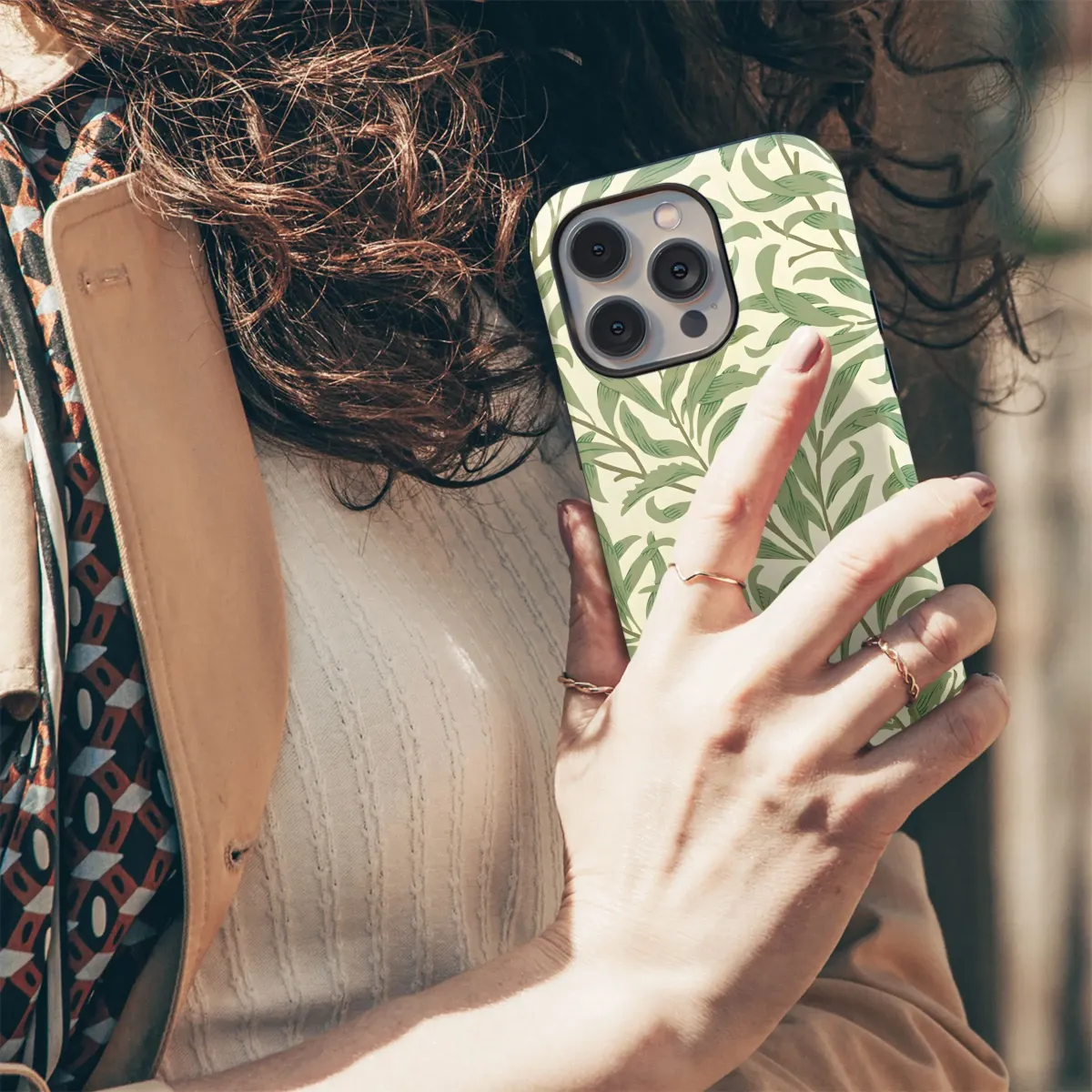 Immerse yourself in the timeless beauty of this captivating botanical pattern, a design destined to bring a touch of nature's elegance to your essential daily accessories. This exquisite seamless print, reminiscent of classic Arts and Crafts movement artistry, features a delicate dance of stylized green leaves and flowing branches set against a serene, light-toned background. The intricate detail captures the organic rhythm of nature, offering a sense of calm and sophistication. The rich palette of earthy greens and subtle brown accents creates a harmonious and visually appealing aesthetic. This vintage-inspired leafy design is perfect for anyone seeking to personalize their personal tech items with a unique artistic flair. Its versatile elegance complements various styles, from modern minimalist to traditional charm. Envision this beautiful foliage pattern adorning your everyday carry, transforming a simple object into a statement piece. The repeating pattern ensures a cohesive and aesthetically pleasing look, highlighting the intricate details of the willow-like boughs. This isn't just a design; it's an artistic expression, infusing your personal style with the tranquil beauty of a classic botanical print. Elevate your aesthetic with this stunning natural design, an ideal choice for adding a sophisticated, nature-inspired touch to your most-used devices. This intricate leaf pattern provides a constant connection to the beauty of the outdoors, rendered in a timeless artistic style. It's the perfect way to express your appreciation for organic design and classic patterns through your personal accessories.
