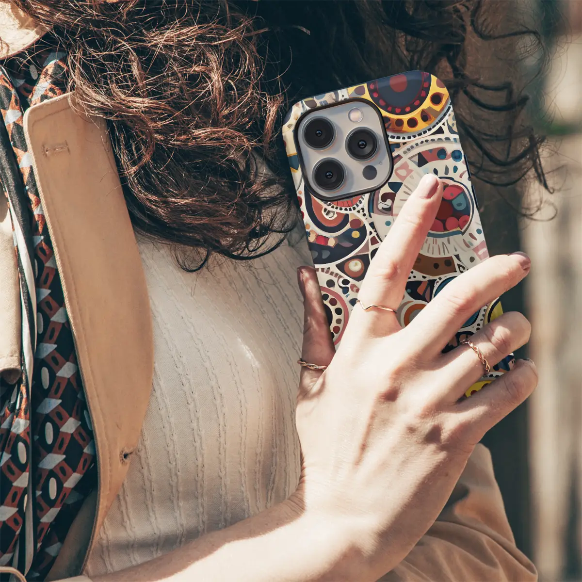 Unleash your wild side with this captivating phone case, boasting vibrant geometric patterns intertwined with exotic animal skin textures. Designed to fit iPhone, Samsung, and Pixel phones seamlessly, it's the perfect accessory to enhance your style while safeguarding your device. The intricate patterns add a touch of sophistication, while the animal skin accents bring a dash of adventure. Its durable construction ensures lasting protection against scratches and bumps, making it the perfect companion for your daily escapades.