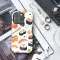 Dive into a delicious world of culinary art with this whimsical and vibrant design, a true celebration for any food lover. Imagine a playful pattern where bright pieces of salmon nigiri, perfectly wrapped maki rolls, and delicate shrimp tempura dance across a clean, cream-colored canvas. Each element is rendered with a charming, illustrative style, capturing the joy and artistry of Japanese cuisine. Notice the intricate details—the glistening orange and black roe, the subtle texture of the seaweed, and the charming sprinkle of sesame seeds that bring the entire composition to life. This isn't just a pattern; it's an expression of passion for good food and beautiful aesthetics. It’s for the devoted foodie, the Japan enthusiast, the one whose heart skips a beat at the sight of a perfectly crafted sushi platter. Let this stylish illustration add a pop of savory personality to your everyday essentials, serving as a unique conversation starter. It’s a wearable piece of art that’s a perfect gift for the sushi aficionado in your life, or a delightful treat to satisfy your own craving for cute, artistic flair. Carry a piece of this culinary magic with you and let your accessories reflect your delicious taste.