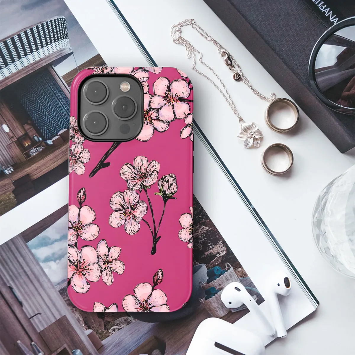Embrace the delicate beauty of spring year-round with this enchanting floral design. This captivating seamless pattern features an exquisite array of soft pink cherry blossoms, their petals unfurling in graceful clusters across a vibrant, deep magenta backdrop. Each individual bloom is rendered with a charming hand-drawn, sketchy style, lending the illustration a unique, artistic touch reminiscent of classic botanical sketches. Subtle watercolor washes add depth and a romantic blush to the petals, enhancing the feeling of natural artistry. The intricate detail in the lines and shading captures the fleeting elegance of blossoming flowers, bringing a constant breath of fresh, nature-inspired beauty to your daily life. This botanical illustration is more than just a visually stunning print; it's a mood enhancer, designed to evoke feelings of peace, tranquility, and the joyful arrival of warmer, sunnier days. It’s perfect for anyone who adores sophisticated nature art, appreciates feminine aesthetics, or simply wants to carry a piece of delicate, vibrant beauty with them throughout the day. Imagine this lovely floral pattern adorning your personal item, effortlessly transforming a frequently used object into a truly stylish accessory that vividly reflects your passion for beautiful prints and intricate details. The repeating nature of the seamless design ensures a continuous flow of these charming blossoms, creating a consistently beautiful visual piece that stands out. This makes it an ideal choice for gifting a touch of unique floral elegance to a cherished friend or simply treating yourself to a piece of delightful wearable art. Let these pretty pink petals and lush magenta hues brighten your outlook and add a sophisticated, yet playfully romantic, touch to all your interactions. This striking art print is crafted to be a conversation starter, a small, delightful slice of spring beauty held comfortably in your hand. The vibrant colors are specifically chosen to pop and make a strong visual statement wherever your day takes you, showcasing the delicate blossoms and elegant branches with clarity.