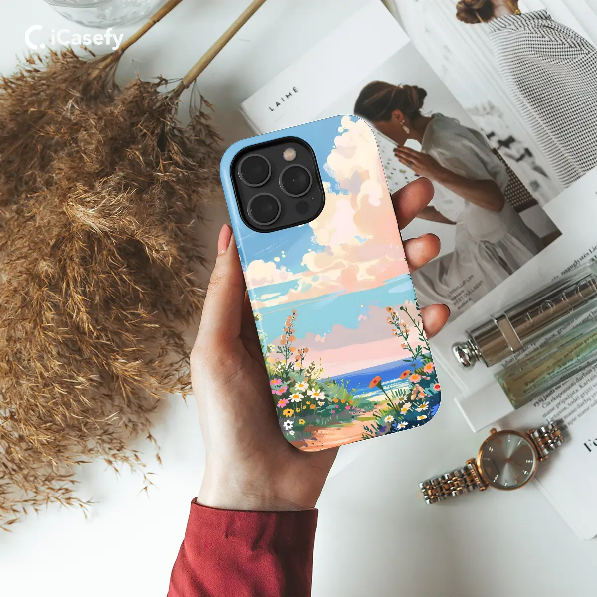 Embark on a tropical escape with our Vibrant Summer Floral Sea Phone Case! This captivating design adorns your phone with a mesmerizing tapestry of vibrant beach blooms, shimmering seascapes, and flowing waves. Crafted with precision, it offers superior protection to your device, ensuring it weathers the sandy shores and salty breezes with ease. Compatible with iPhones, Samsung Galaxy, and Pixel devices, this case is your perfect summer companion, adding a touch of coastal allure to every moment.