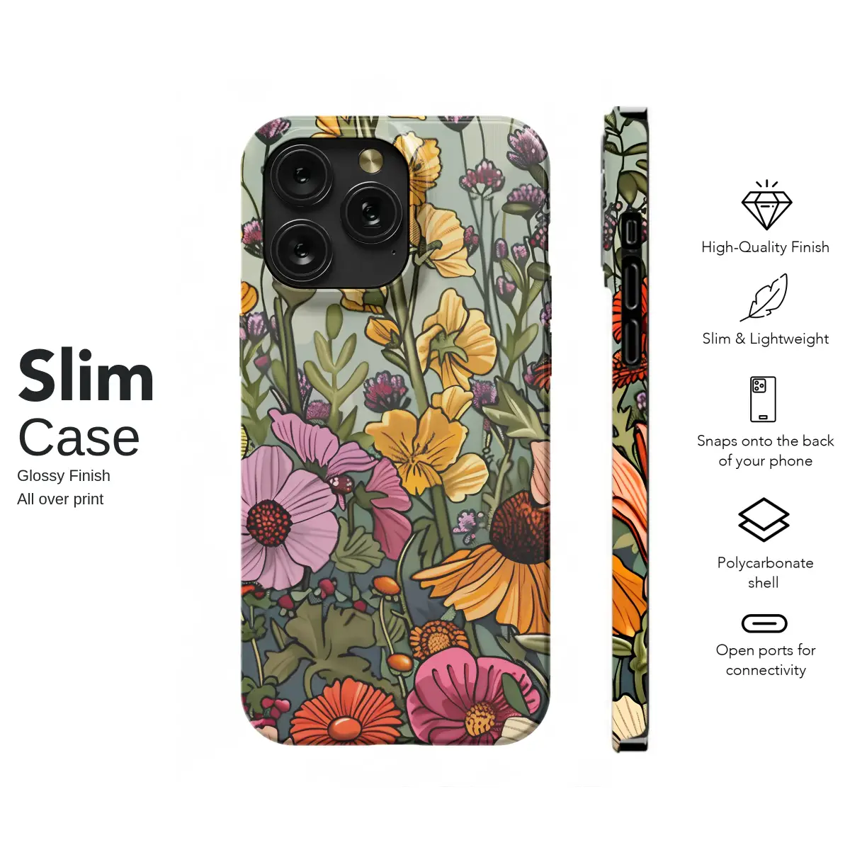 Wander into a sun-drenched meadow bursting with life, a vibrant tapestry of wildflowers captured in exquisite, artful detail. This stunning botanical illustration brings the untamed beauty of a secret garden right to your fingertips, transforming your most essential accessory into a wearable masterpiece. Every glance reveals a new treasure within this lush floral landscape: golden snapdragons reaching for a pale blue sky, delicate purple clover peeking through rich greenery, and a riot of pink, orange, and white cosmos dancing in an unseen breeze. You might even spot a tiny, curious beetle on its own journey among the petals! The artwork, characterized by its bold, graphic outlines and rich, saturated colors, evokes a timeless, vintage charm reminiscent of classic art nouveau prints, yet feels perfectly fresh and modern. It's the ideal statement piece for the free-spirited soul, the devoted nature lover, or anyone who dreams of a cottagecore aesthetic. Imagine this pop of color against your daily attire, a conversation starter and a personal signature. It’s more than just a design; it's a feeling, a portable escape to nature's embrace. A thoughtful and unique gift for birthdays, holidays, or just because, this enchanting meadow scene will infuse perpetual summer into anyone's routine. Carry this miniature garden and let its vibrant, joyful energy brighten every moment.