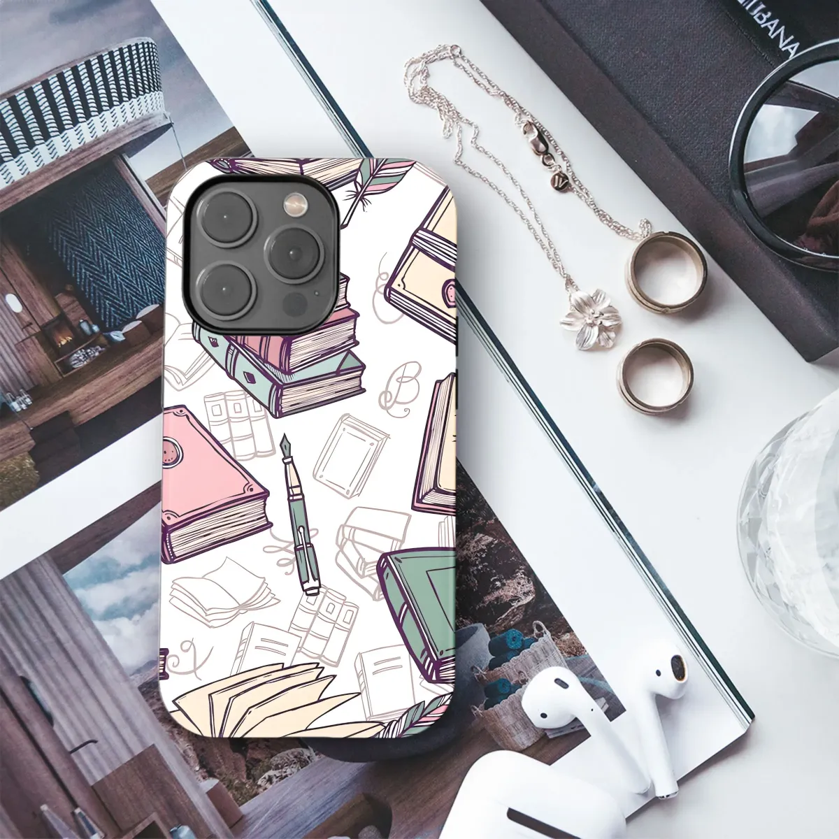 Discover the exquisite detail of this charming design, a hand-drawn pattern celebrating the timeless allure of books and the written word. This captivating artwork is a visual poem for literary souls, featuring carefully rendered stacks of vintage volumes in varied sizes and colors, some with elegant binding details, others open to display enchanting illustrations or pages ready for inscription. The design is enriched with classic writing implements, including a graceful fountain pen and a traditional quill, accompanied by artistic ink splatters and subtle calligraphic elements that weave through the composition. A sophisticated color scheme of antique greens, soft blush pinks, warm creams, and deep scholarly purples contributes to a feeling of cozy nostalgia and refined elegance, transporting you to a secret library or a peaceful reading nook. This pattern speaks directly to the heart of anyone who finds joy in turning pages, cherishes the smell of old books, or feels inspired by the power of stories. It's a perfect artistic representation for bibliophiles, aspiring authors, dedicated scholars, or beloved educators. With its unique vintage aesthetic and profound intellectual charm, this design serves as a beautiful tribute to the world of literature and learning. It offers a distinctive and thoughtful gift for any reading enthusiast, infusing their surroundings with a touch of artistic sophistication and a perpetual reminder of the adventures held within books.